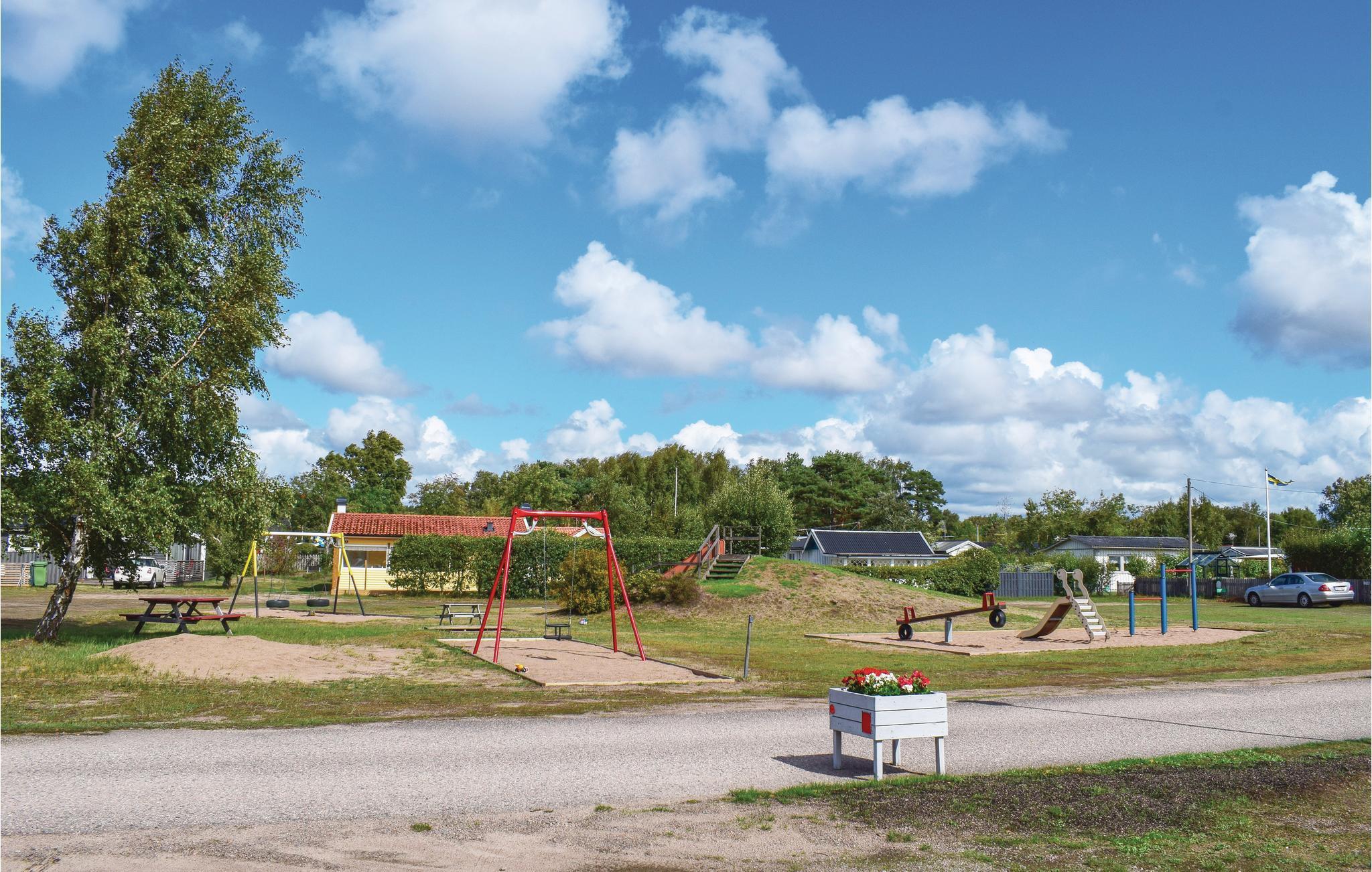 In einer großen Ferienhaussiedlung ist dieses kleine Ferienhaus zu finden und enthält alles, was Sie für einen traditionellen Sommerurlaub in Schweden benötigen. Zum Sandstrand sind es knapp 1000 m. Dieser ist lang und breit und es ist erlaubt an manchen Stellen mit Auto drauf fahren. Er ist auch populär bei Wind- und Kitesurfern. Der Schlafbereich im Haus wird im TV-Zimmer durch einen Vorhang abgetrennt, es steht hier eine Couch für 2 Personen. Im Gästehaus garantieren zwei Stockbetten ungestörten Schlaf im Urlaub. Auf der überdachten Terrasse gibt es Schatten und Schutz vor Wind. Direkt neben dem Haus ist ein Gemeinschaftsgrund mit Spielplatz und Pétanquefeld. Fahrräder zum Ausleihen vorhanden. In Båstad gibt es jedoch einen Fahrradverleih. Der Weg Kattegatsleden bietet sich für einen Radausflug an, er führt in der Nähe vorbei. Für längere Ausflüge gibt es in 400 m Entfernung eine Bushaltestelle mit Anschluss an die Bahnhöfe in Båstad und Laholm. Eine Bäcker, Kaufmann und 2 Restaurants liegen in Skummeslöv in ca. 1 km Entfernung. Båstad bietet im Sommer Tenniswochen und Segelwochen.
