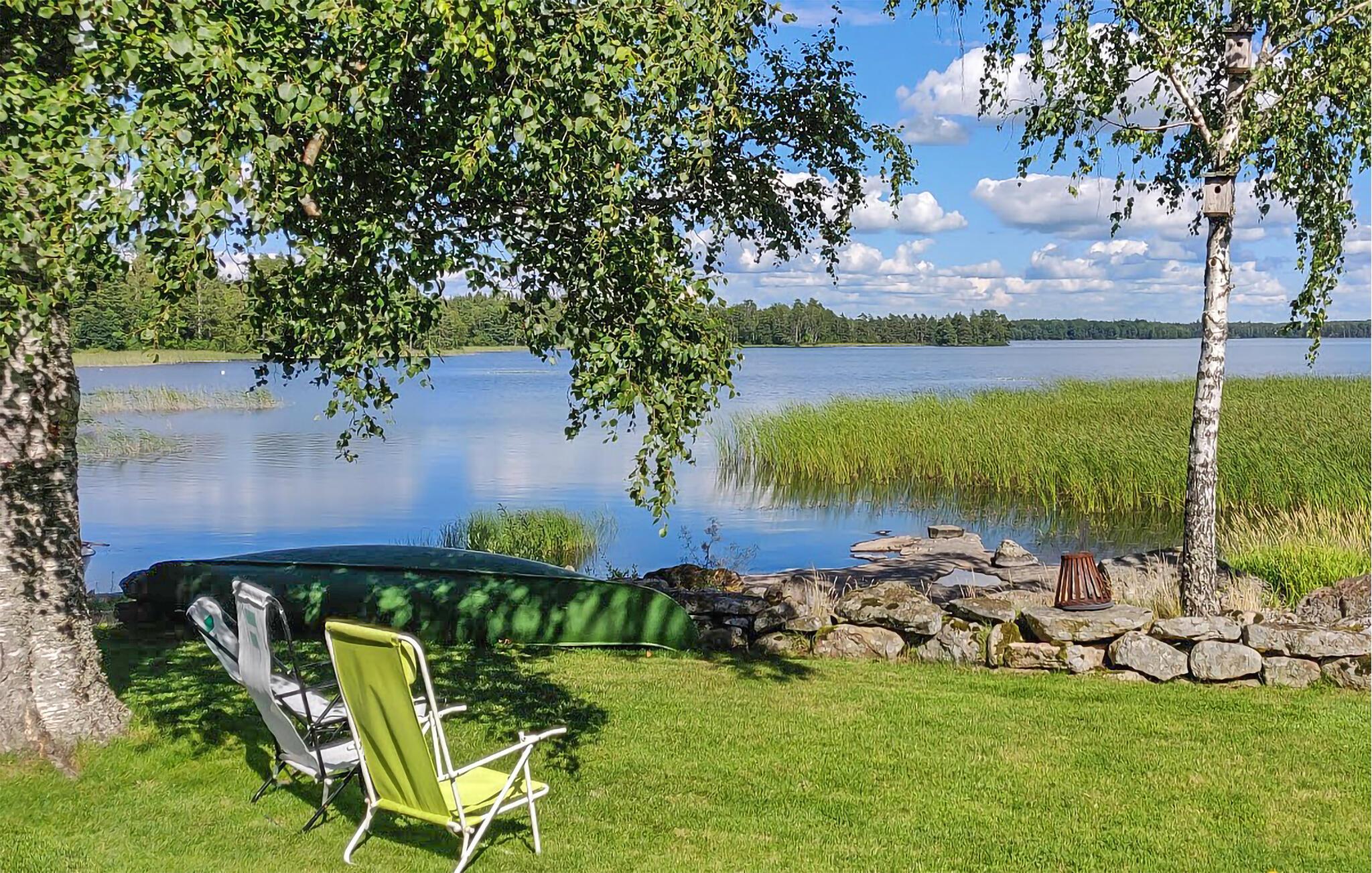 In diesem einladenden komfortablen Ferienhaus am Wasser können Sie zur Ruhe kommen und das Leben gemeinsam mit Ihren Lieben genießen. Gemütliche Einrichtung und eine helle anheimelnde Atmosphäre schaffen einen Ort der Entspannung. Nehmen Sie ein gutes Frühstück mit herrlichem Blick auf den See ein. Nach einem schönen Tag gibt es nichts Schöneres als ein Barbecue im Freien. Während Sie die das Essen auf dem Grill zubereiten, können Ihre Kinder auf dem Rasen herumtollen. Im Garten gibt es viele schöne Ecken zum Genießen. Der See bietet gute Angel- und Bademöglichkeiten.