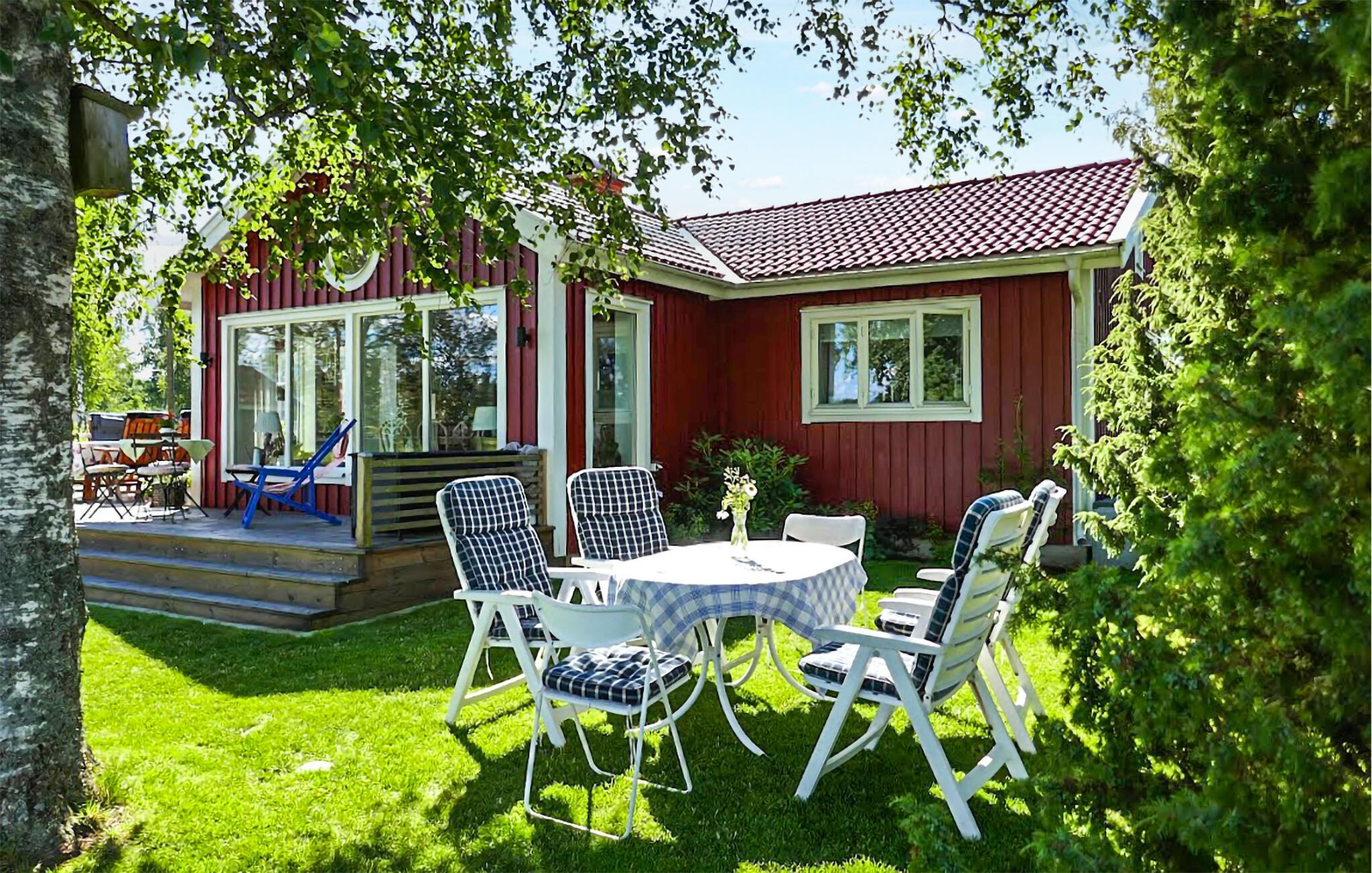 Voll ausgestattetes Ferienhaus mit schönem Garten direkt am See Flåren.