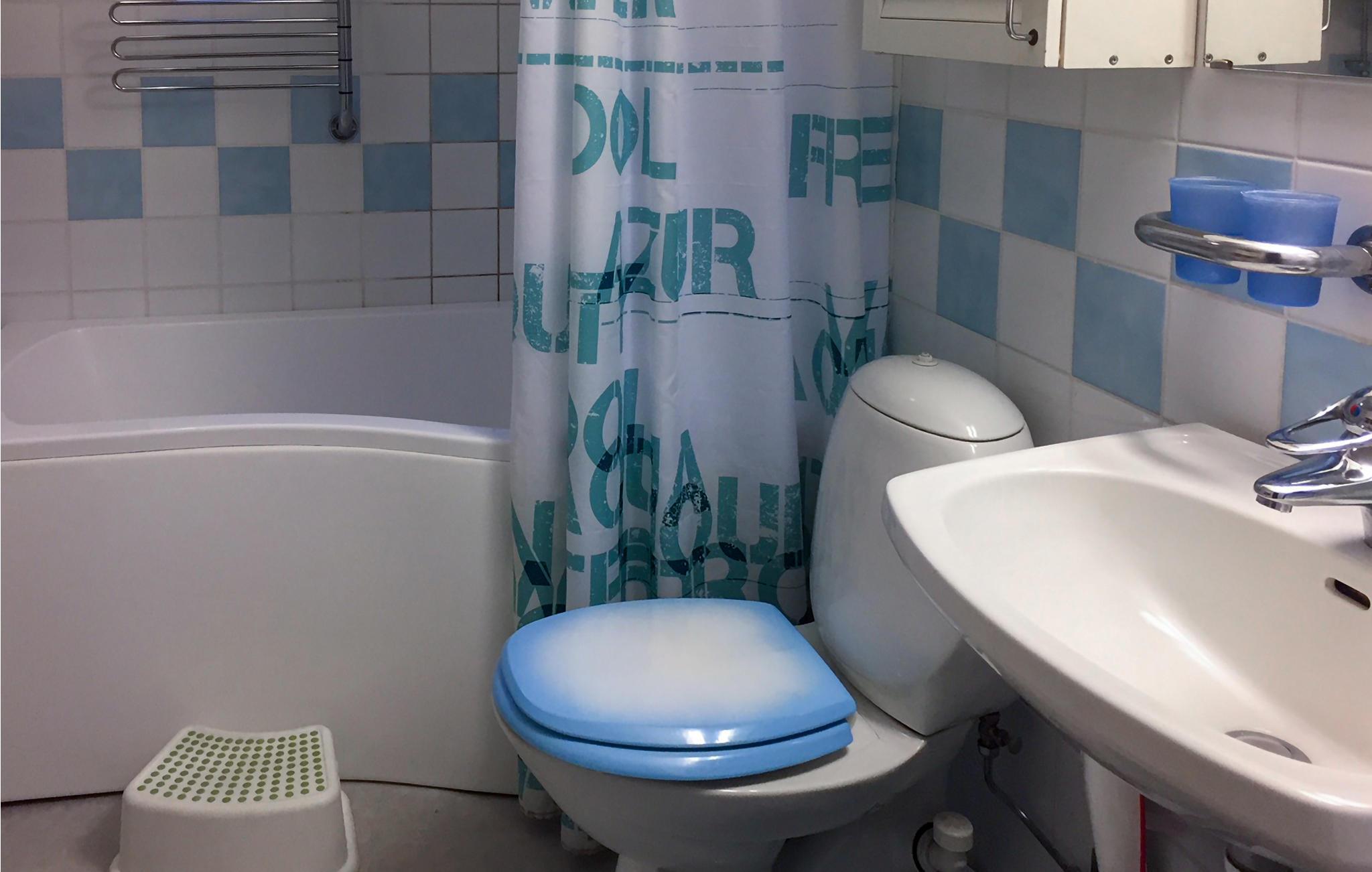 Badezimmer (nr. 1) - WC. Warmes und kaltes Wasser. Handdusche und Badewanne