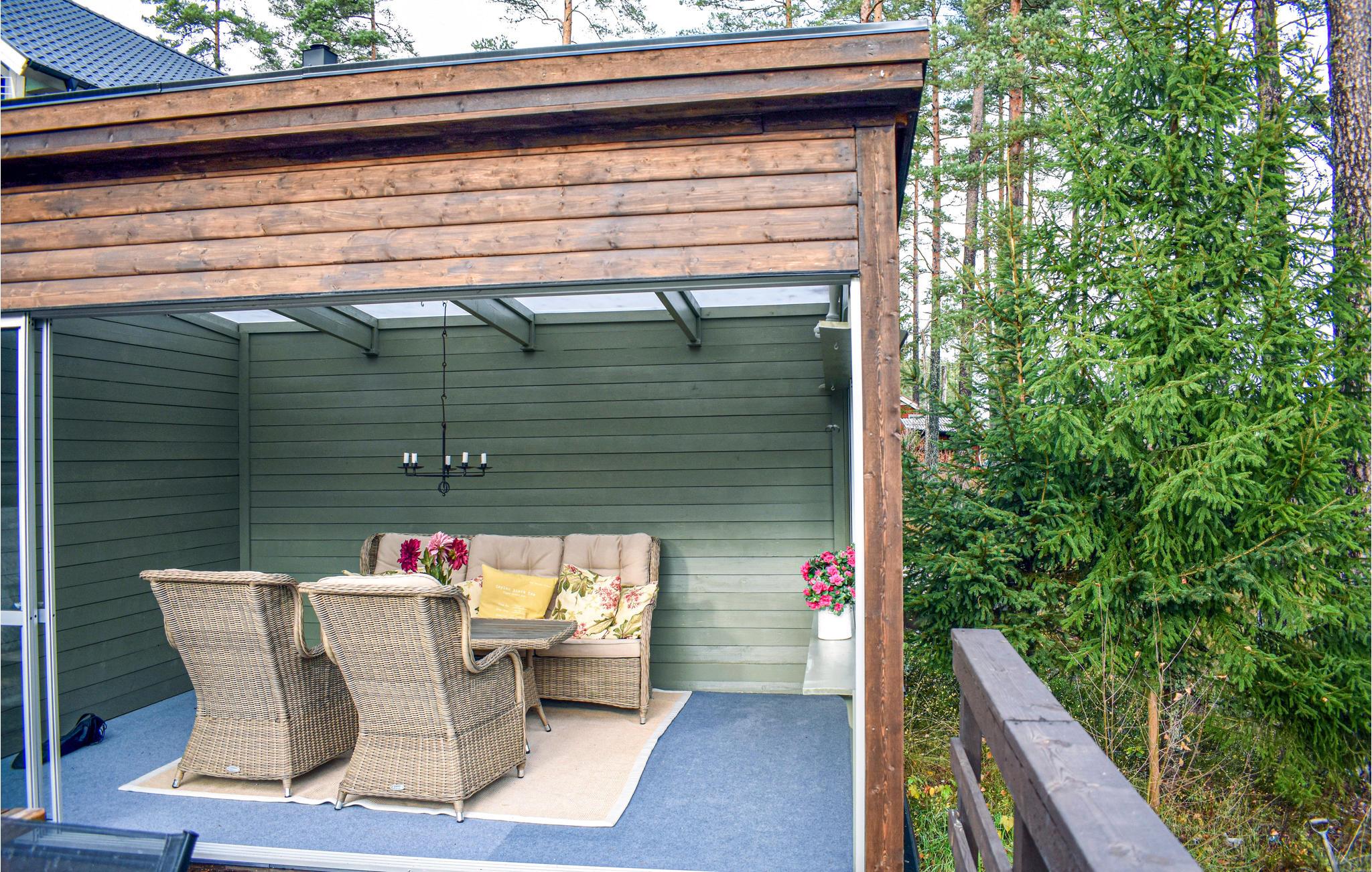 Treten Sie ins Freie, wo die Terrasse zum Entspannen einlädt. Genießen Sie nach einem Saunagang den schönen Blick auf den Wald auf dem verglasten Balkon und bereiten Sie leckere Gerichte in der Außenküche zu.