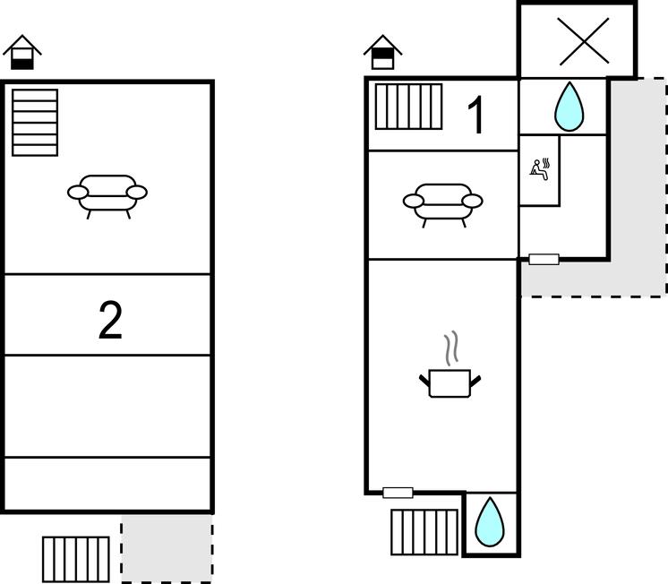 Hinweis: Die Schlafplätze im Obergeschoss erreichen Sie über einen Außeneingang und eine steile Treppe.