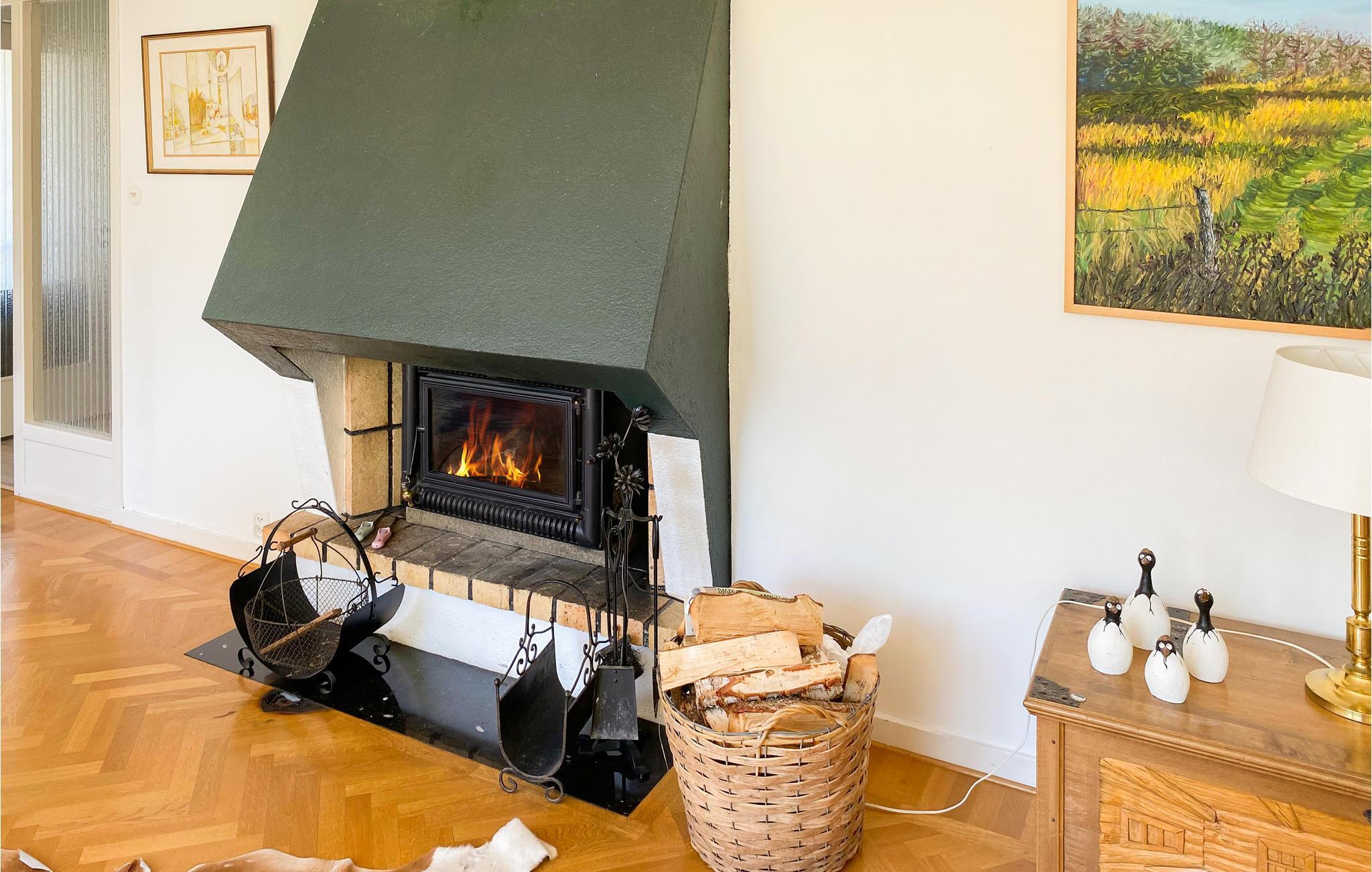 Willkommen in diesem farbenfrohen und geräumigen Ferienhaus. Gemeinsam mit Ihrer Großfamilie können Sie es sich hier gemütlich machen und die unterschiedlich gestalteten Räume erkunden. Kommen Sie im Wohnzimmer mit praktischer Einrichtung und einem Kaminofen zu Film- und Spieleabenden zusammen und entspannen sich nach Ihren Aktivitäten. Treten Sie vom Wohnzimmer auf der Terrasse, die Sie an Sommertagen zu Mahlzeiten im Freien einlädt. Trinken Sie eine kühle Limonade und schauen Ihren Kindern beim Spielen im Garten zu.