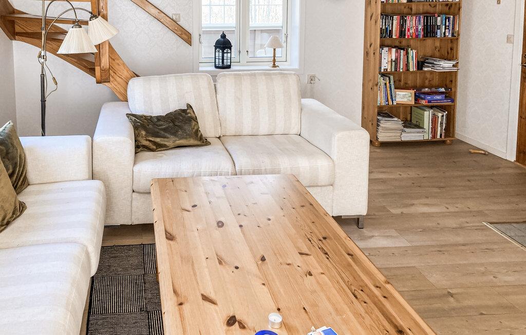 Genießen Sie die freundliche Atmosphäre dieses liebevoll eingerichteten Hauses. Nehmen Sie im gemütlichen Wohnbereich auf den hellen Sofas Platz und lassen Sie den Blick durch die großen Fenster in die Natur schweifen. Verweilen Sie am Esstisch und genießen Sie gemeinsame Mahlzeiten in ruhiger Umgebung. Bereiten Sie Ihre Speisen in der geschmackvoll gestalteten Küche zu, die mit modernen Elementen ausgestattet ist.