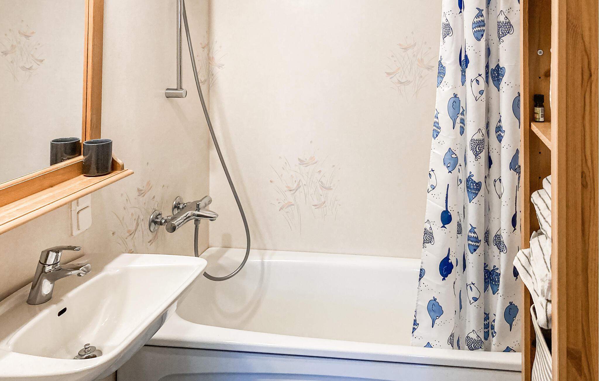 - WC mit warmem und kaltem Wasser, Badewanne