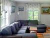 Auf der Eingangsveranda können Sie den Tag mit einem Getränk ausklingen lassen, während Sie die Natur rund um den Garten genießen, der das Haus von beiden Seiten umgibt – ideal für ruhige Momente in der frischen Luft.