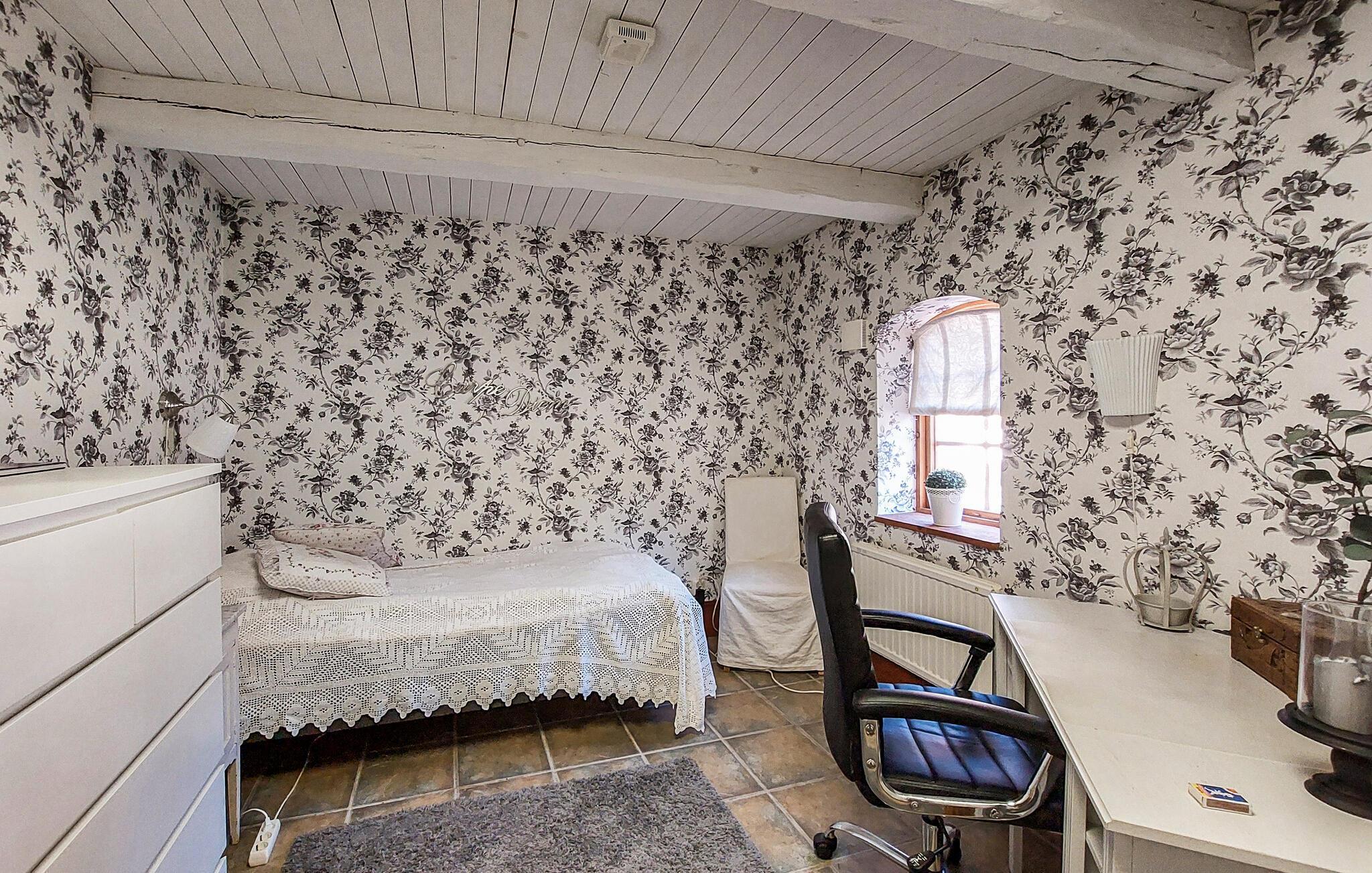 Dieses geräumige Bauernhaus lädt Sie zu einer bezaubernden Zeitreise ins 19. Jahrhundert ein. Freuen Sie sich auf gesellige Mahlzeiten und fröhliche Spieleabende im großen Wohnbereich und lauschen Sie bei einem Glas Wein auf dem Sofa dem Knistern des Kaminofens. Gönnen Sie sich wohlige Momente in der Sauna oder halten Sie sich auf dem Trimmrad fit.