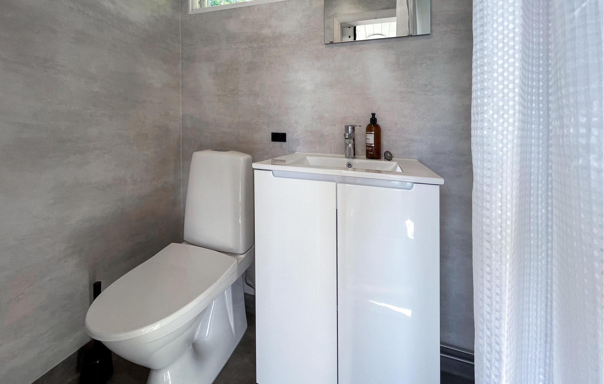 Auf der geräumigen Holzterrasse können Sie auch an der frischen Luft speisen oder einfach die schöne Umgebung genießen. Der großzügige, gepflegte Garten bietet weitere Rückzugsorte. Beobachten Sie die Tiere im nahe gelegenen Wildgehege oder erkunden Sie die umliegenden Wiesen und Wälder. Probieren Sie auch Ihr Glück beim Angeln in einem der Seen in der Region. Für Tagesausflüge eignen sich das beliebte Einkaufsparadies Ullared, die historische Stadt Laholm oder die Strände von Halmstad.