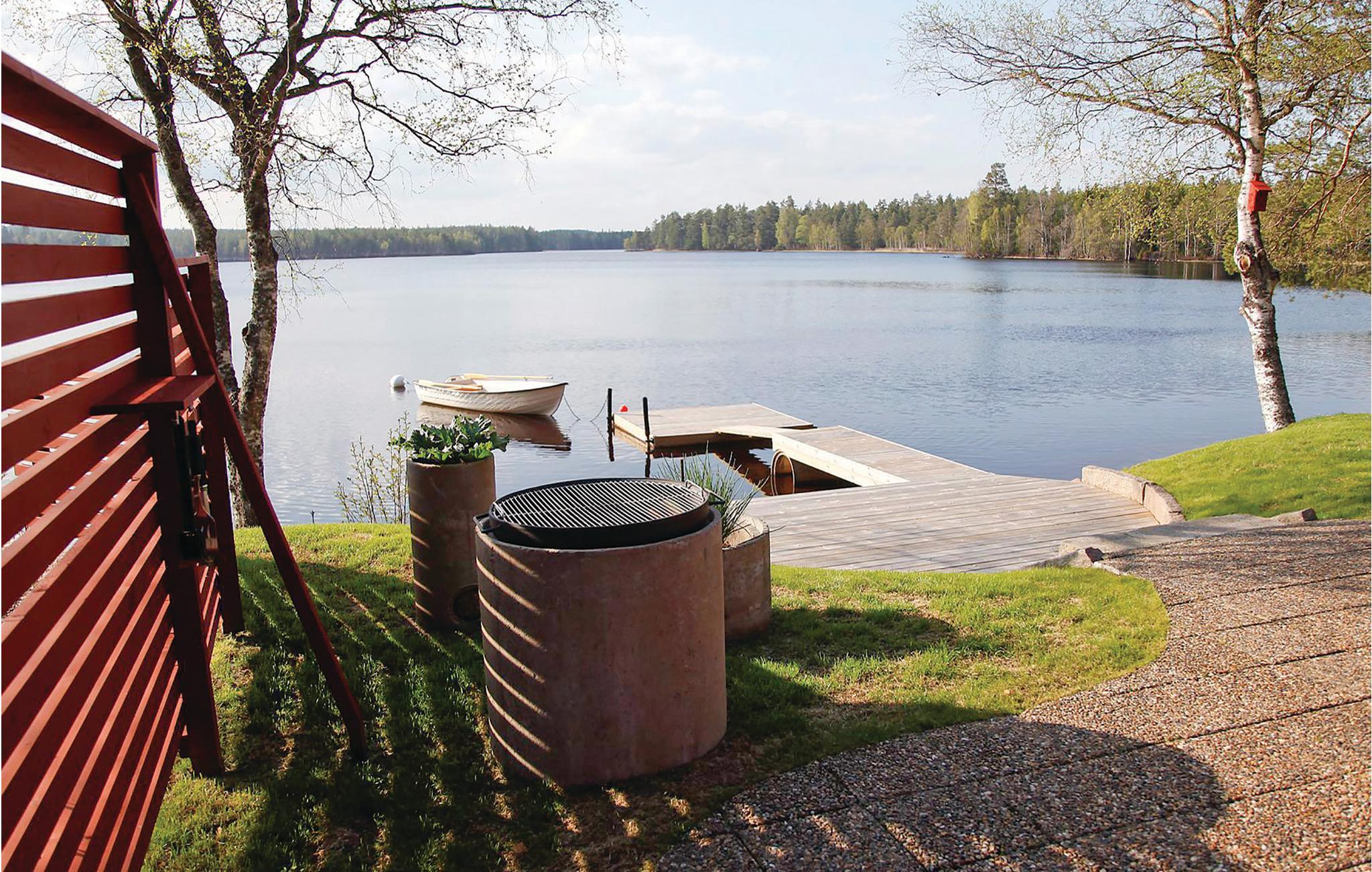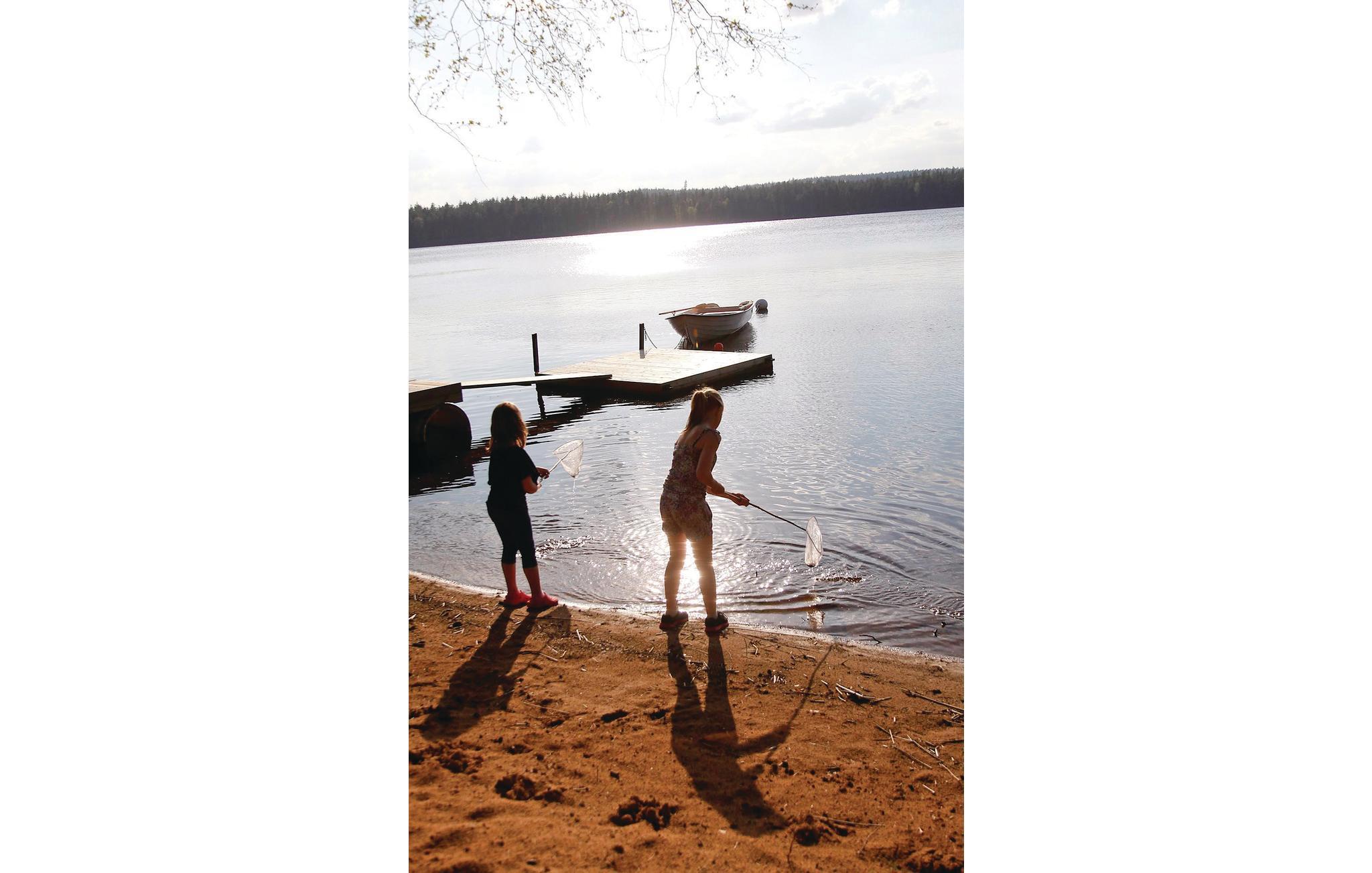 Abgesehen vom dem tollen Seepanorama bietet dieses Ferienhaus auch einen eigenen Sandstrand und eine private Sonnenterrasse und einen Steg direkt am Wasser. Im Waldgebiet rund um die Hütte gibt es viele Beeren und Pilze.