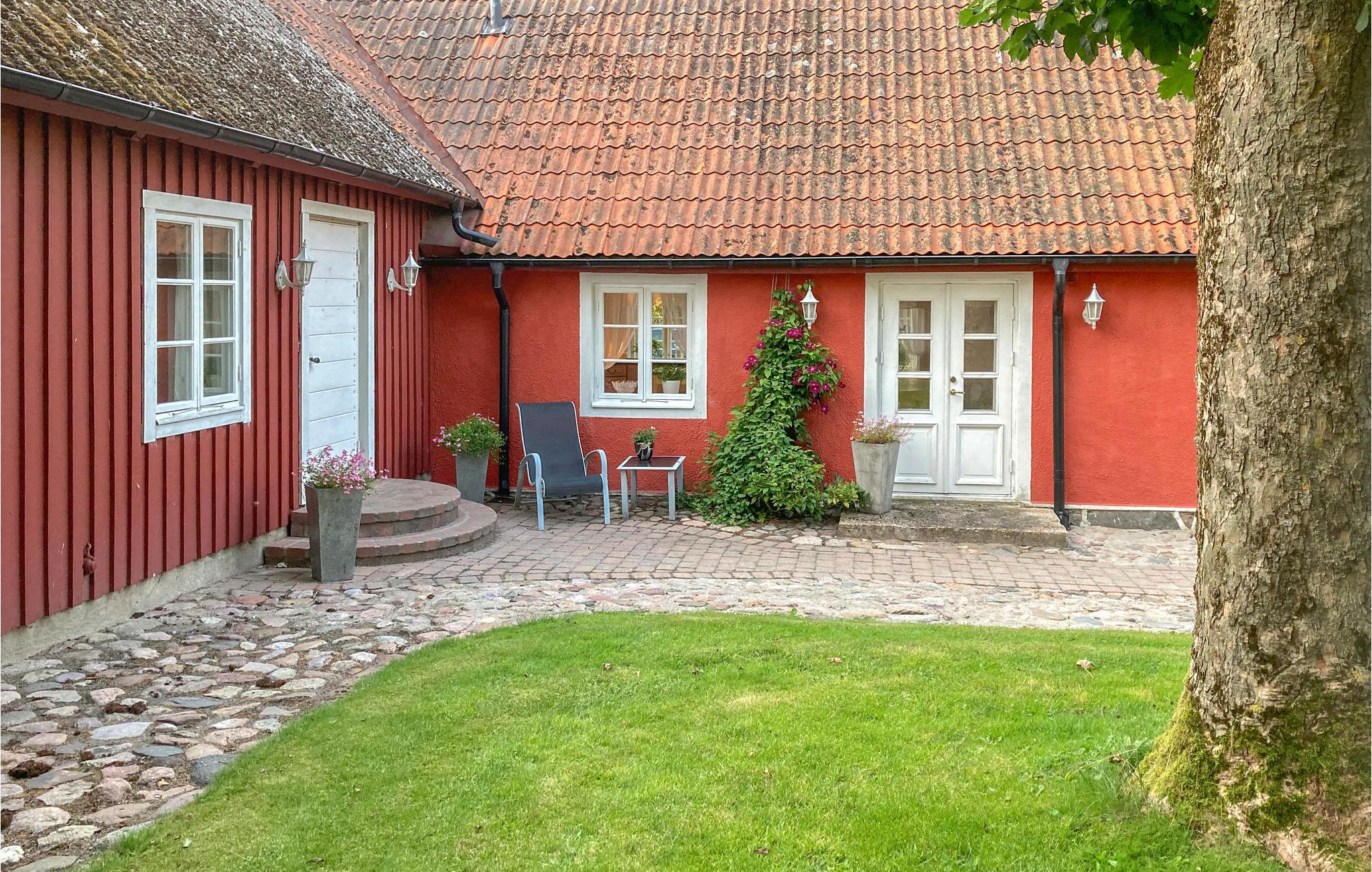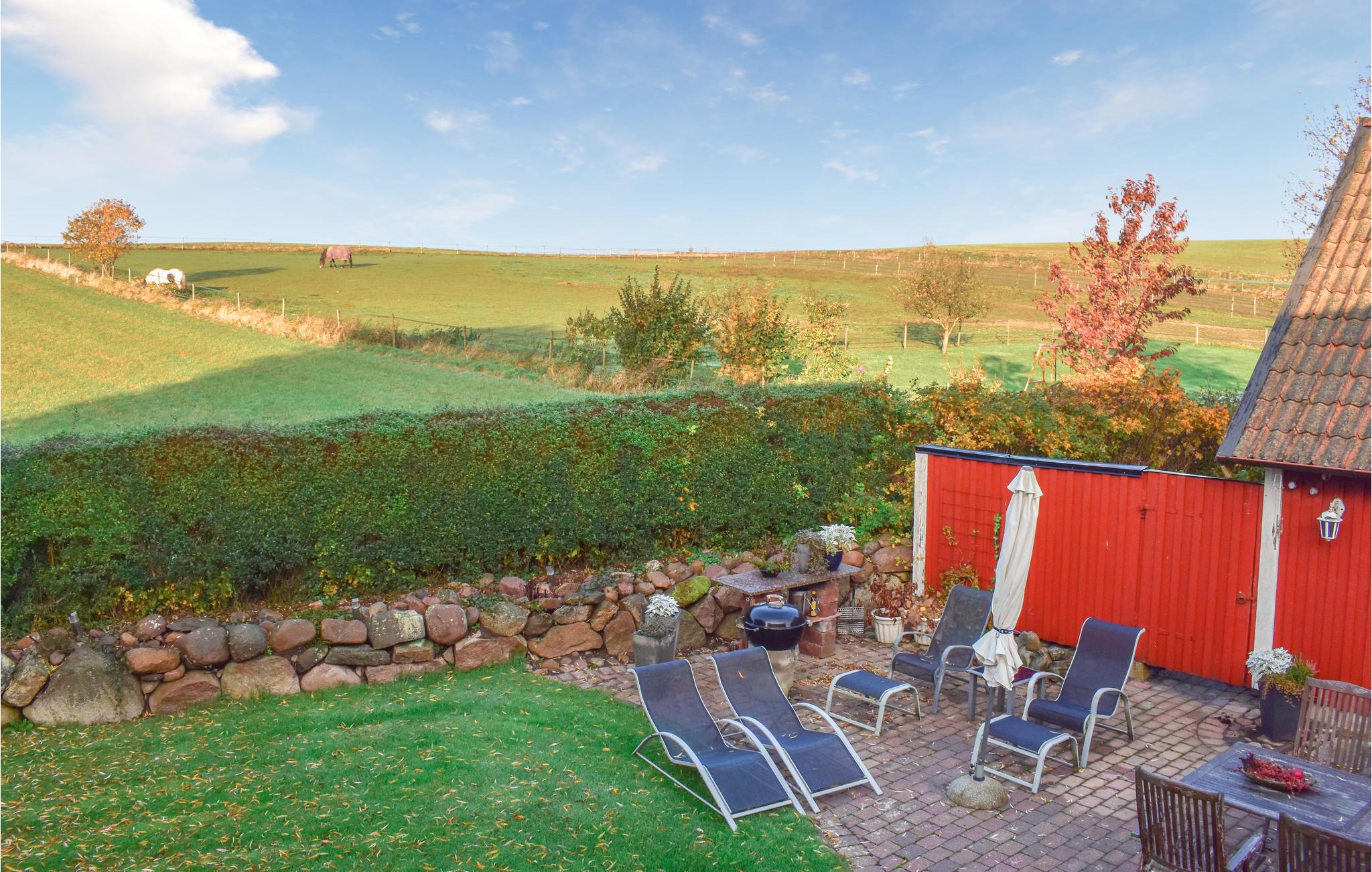 Dieses wunderbare Ferienhaus ist geräumig und auf einem großen Grundstück gelegen, bietet also mehr als genug Platz zur Entfaltung für alle Feriengäste. Der Garten mit Bachlauf ist bestens gepflegt und ermöglicht die Aussicht auf die Felder (Der Nachbar hält dort Pferde), doch auch die reine Ansicht der typisch südschwedischen roten Holzwände ist fantastisch.