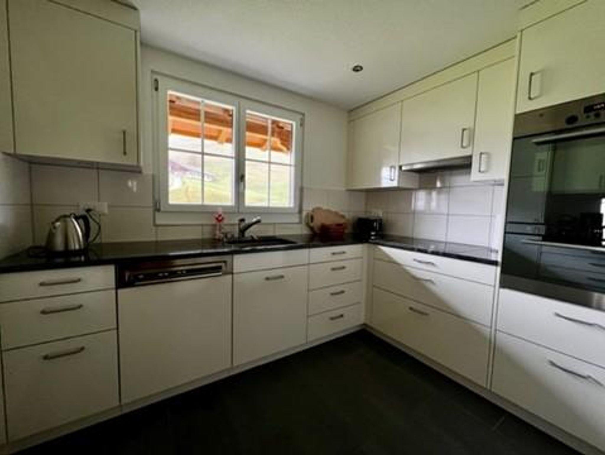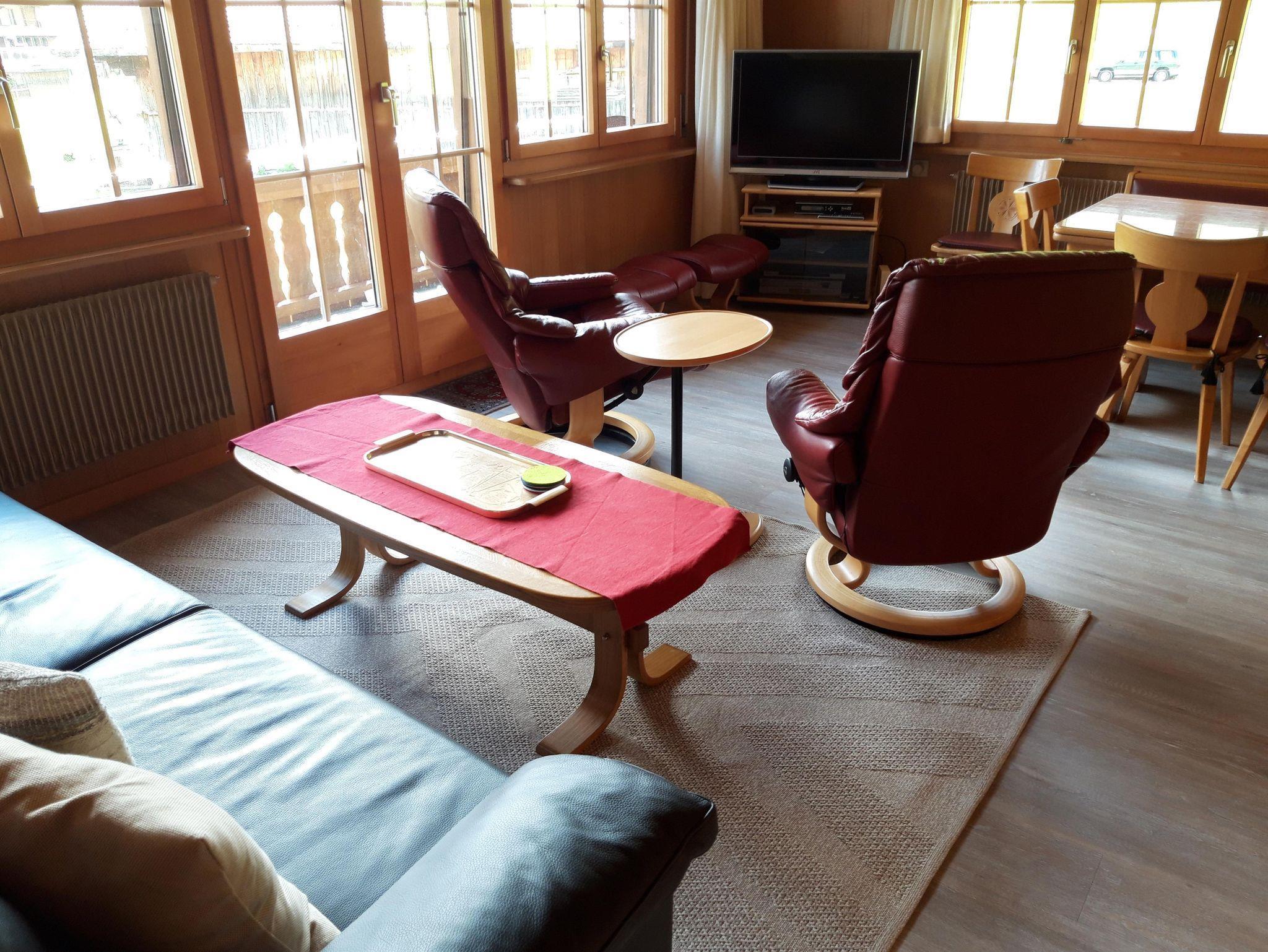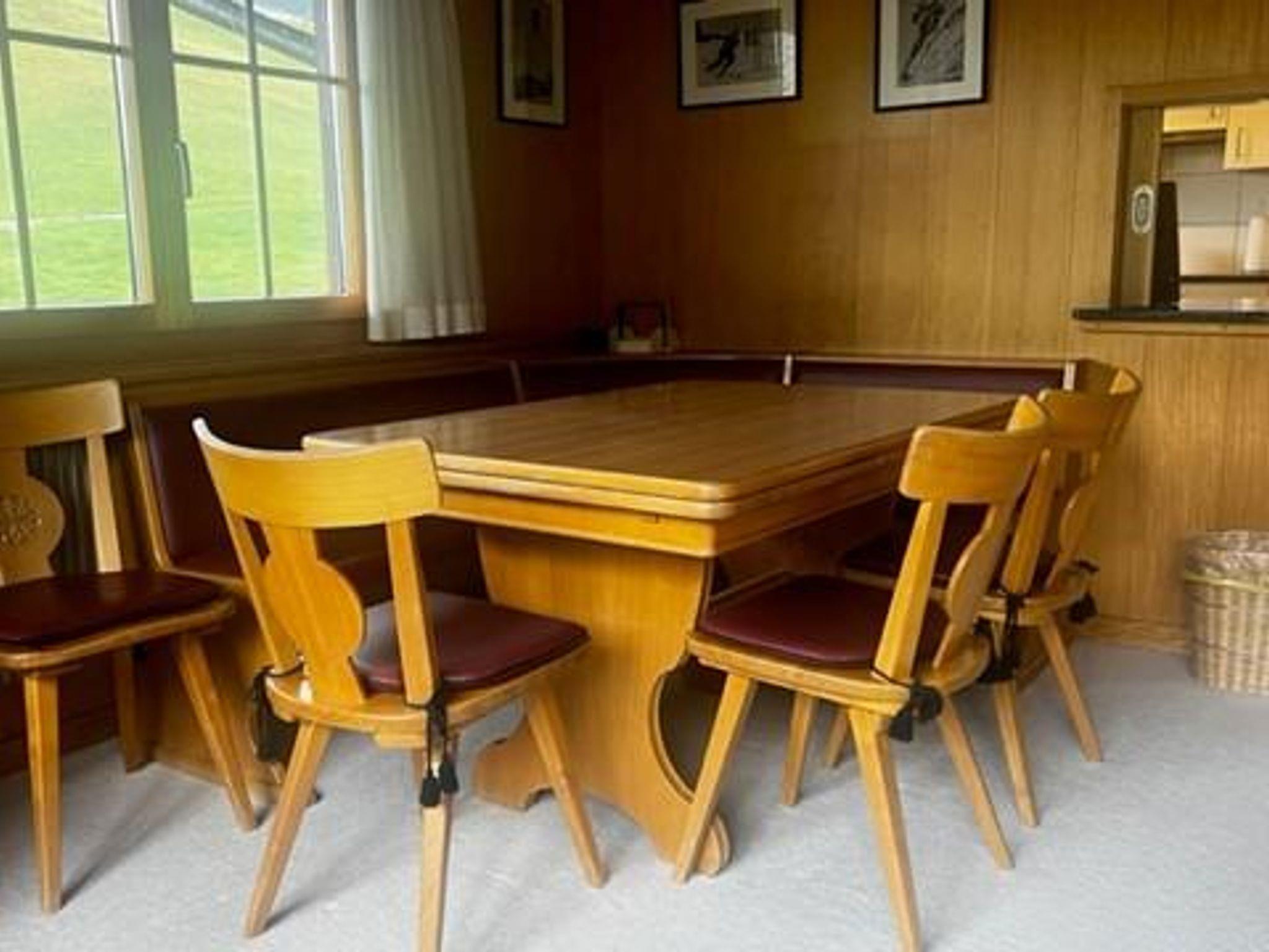 Gemütliches freistehendes Chalet an ruhiger Lage ausserhalb des Dorfes nahe des Skigebietes. Bushaltestelle zum Dorf oder zum Skigebiet (Bergläger/Silleren, Hahnenmoos) ca. 170m entfernt. Wie auch das an 365 Tagen im Jahr geöffnete Restaurant Des Alpes. Super Ausgangspunkt für Wanderungen. Wohnzimmer mit Sitzecke (1 Sofa und 2 Sessel), TV, DVD, VHS-Recorder, Radio. Moderne vollausgerüstete Küche mit Backofen, Mikrowelle, Geschirrspüler, Nespressokaffemaschine. 2 Schlafzimmer mit Doppelbett, jeweils trennbar und zu Zweibettzimmern umstellbar. 1 Schlafzimmer mit zwei Einzelbetten (total 6 Betten). Jedes Schlafzimmer mit eigenem Waschbecken. 1 Badezimmer mit Dusche/WC. 1 separates WC im EG. Balkon mit schöner Bergsicht mit Vormittags- und Nachmittagssonne, sowie Sitzplatz mit Abendsonne. Gartenmöbel vorhanden. 3 Parkplätze vorhanden. Haustiere nicht willkommen. Nichtraucherhaus.