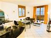 Im Wohn-Essraum hat es einen grossen Tisch, Home-TV mit über 300 Kanälen, DVD, Digital Radio, gutes WiFi und ein bequemes Sofa, dass in der Not auch zu einem Einzelbett umgewandelt werden kann.