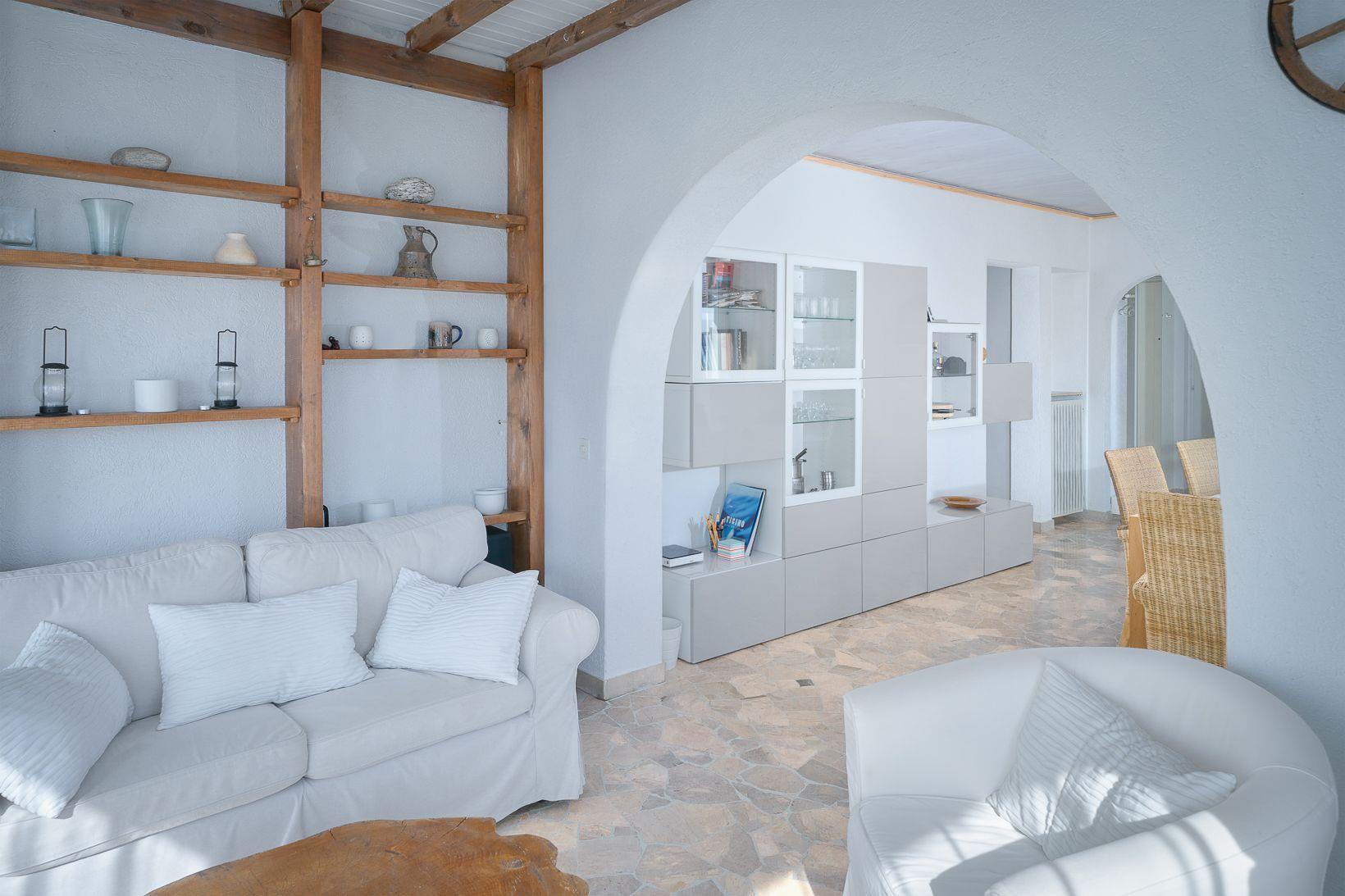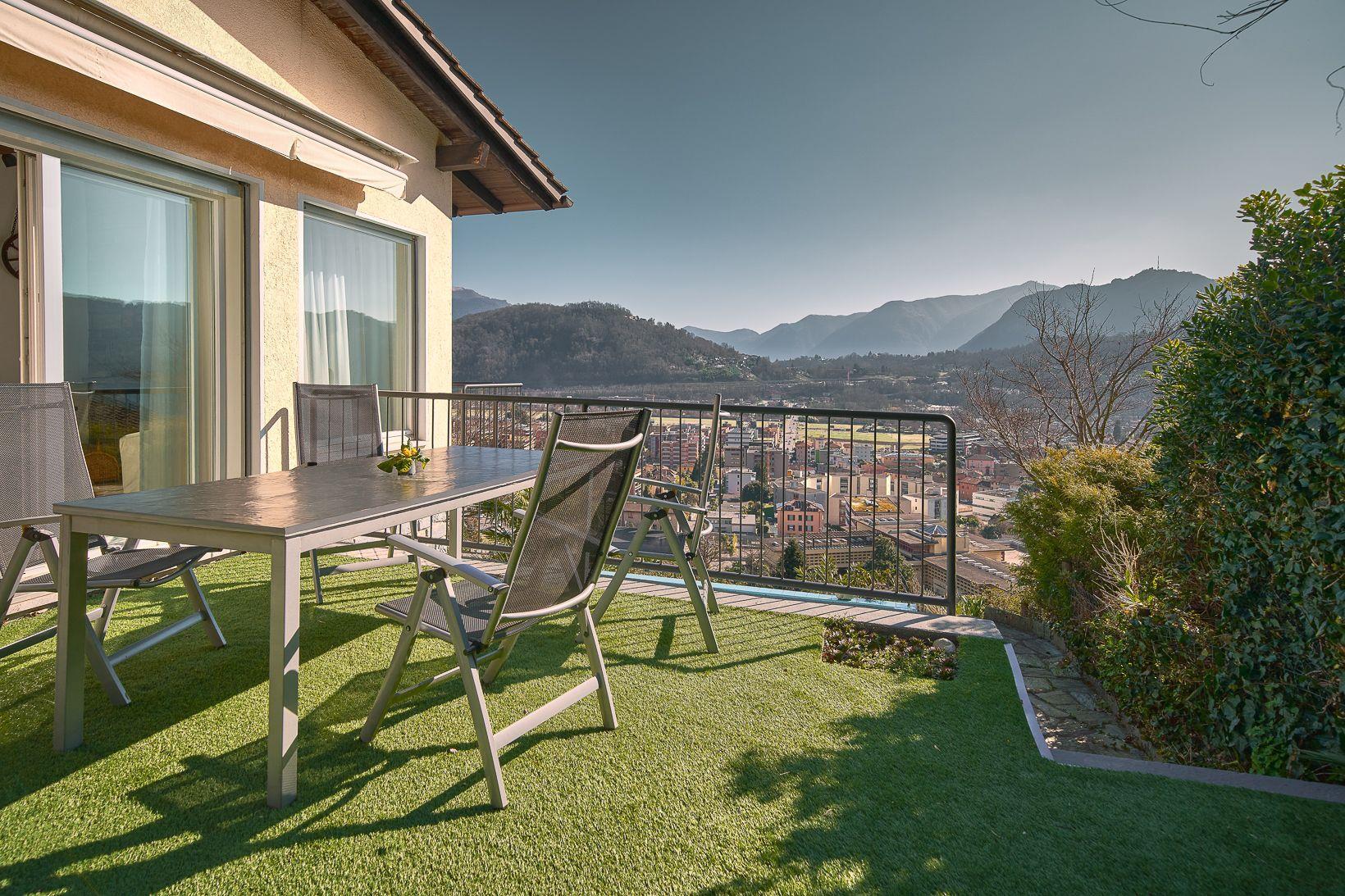 Das Obergeschoss öffnet sich zu einem einladenden Wohnbereich, in dem der Esstisch und das gemütliche Wohnzimmer mit einem atemberaubenden Blick auf den Luganersee begeistern.
