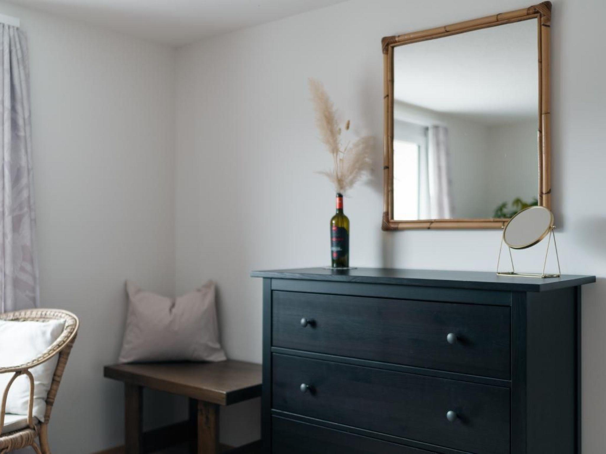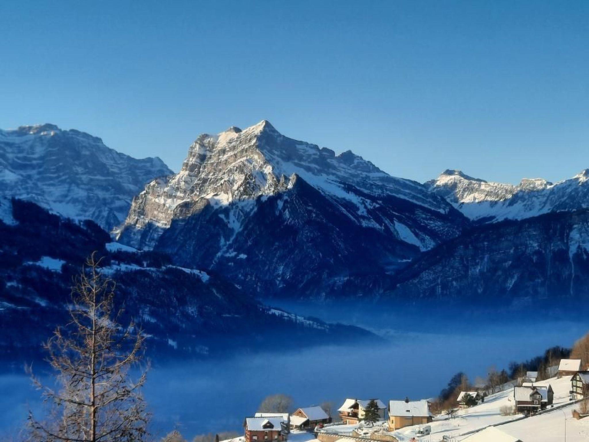 Willkommen in Amden! "Meine Brüder, Freunde und ich waren absolut von den Aussichten vom Balkon aus begeistert. Die Unterkunft hat eine tolle Lage und ist sehr geräumig. In unmittelbarer Umgebung gibt es ein paar Supermärkte. Der Sessellift ist ebenso nur in ein paar Minuten zu Fuß erreichbar. P.e.t.e.r. und V.e.r.e.n.a. waren total freundlich und hilfsbereit! Immer, wenn wir Fragen oder was benötigt haben, haben sie uns geholfen. Wir bedanken uns für die Gastfreundschaft! :)" LG S. Dezember 2022 Entspannt euch mit eurer Familie und euren Freunden in unserer 110m2 grossen Wohnung. Wir haben eine komfortable 5 Zimmerwohnung mit 4 Schlafzimmer à je 2 Betten, 2 Doppelbetten und 4 Einzelbetten. Vom Wohnzimmer, dem Balkon und der Mastersuite geniesst ihr wunderschöne Sonnenuntergänge über den Bergen. Der grosse Esstisch lädt zu Fondue oder Raclette ein. Die 4 Schlafzimmer haben eine unterschiedlicher Ausstattung und Design. Im Hauptschlafzimmer befindet sich ein Doppelbett mit Sicht auf die Sterne, wenn die Verhältnisse klar sind. Dazu kommen 2 Stühle mit einem Tischchen und einer Kommode. Hier gibt es auch genügend Platz für ein Babybett, welches wir zur Verfügung stellen können. Das 2. Zimmer mit Doppelbett ist unser Täferzimmer, in dem alles aus Holz ist und das sich sehr heimelig anfühlt. In diesem Zimmer haben wir auch die traditionellen rot-weiss karierte Bettwäsche und Vorhänge. In unserem Palettenzimmer befinden sich 2 Palettenbetter, die nach frischem Holz riechen. Dieses Zimmer ist mit Bettwäsche und Vorhängen in türkis ausgestattet. Dieses Zimmer eignet sich auch für Kinder gut. Das Kinderzimmer mit 2 niedrigen Betten verfügt ebenfalls über rot-weiss karierte Bettwäsche und Vorhänge sowie zwei schönen Bilder. Der Essbereich mit dem riesigen Tisch bietet allen Gäste bequem Platz, um ein feines Fondue oder Raclette zu geniessen und anzustossen. Der Wohnbereich befindet sich gleich neben dem Essbereich und ist mit 2 schönen Sofas und einem Sessel ausgestattet. Natürlich gibt es auch einen Fernseher, kostenloses WiFi und Pflanzen. Auf dem Balkon kann man gemütlich verweilen und den Abend mit einem Bier oder Glas Wein ausklingen lassen, den Sonnenuntergang bestaunen oder etwas auf dem Gasgrill grillieren. Die Küche ist komplett ausgestattet, und es sind immer einige Grundnahrungsmittel wie Zucker, Kaffee/Tee , aber auch Essig, Öl, Pfeffer Gewürze usw. an Lager. Die Wohnung verfügt über eine Nasszelle mit Bad, Doppel-Waschbecken und Toilette. Handtücher und Trocknungstücher werden zur Verfügung gestellt.