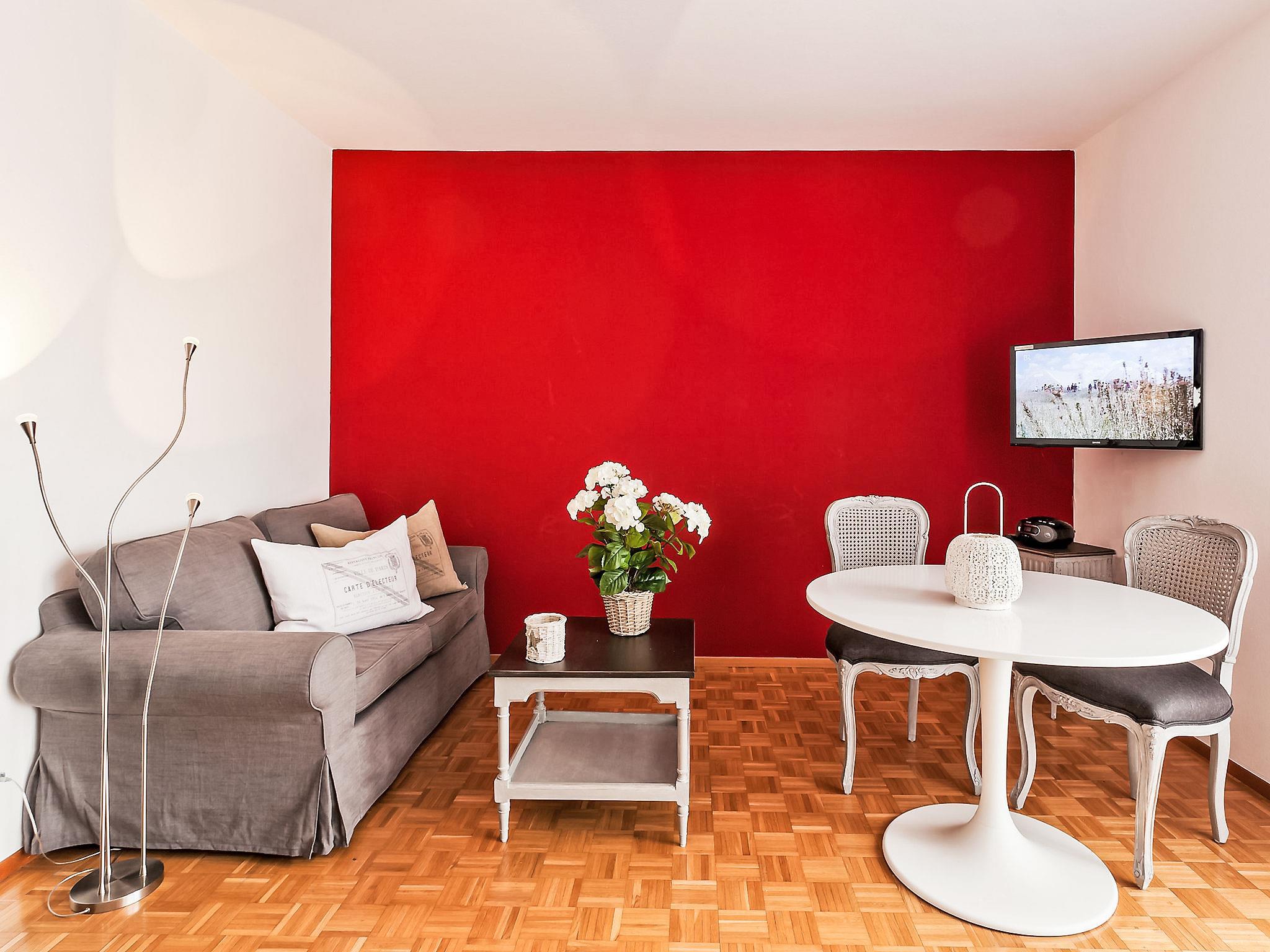 "Double Room", 1-Zimmer-Wohnung 35 m2 im 4. Stock, Südlage. Zweckmässig eingerichtet: Wohn-/Esszimmer mit 2 Wandschrankbetten (90 cm, Länge 200 cm), Sat-TV und Radio. Küche (4 Kochplatten, Backofen, Geschirrspüler, elektrische Kaffeemaschine, Kapseln für die Kaffeemaschine (Nespresso) extra). Bad/WC. Warmluftheizung. Balkon. Terrassenmöbel. Sicht. Zur Verfügung: Internet (Wireless LAN, gratis). Bitte beachten: Nichtraucher-Unterkunft. Maximal 1 Haustier/Hund erlaubt. NL-00005003