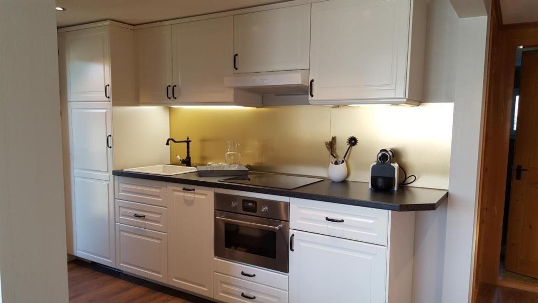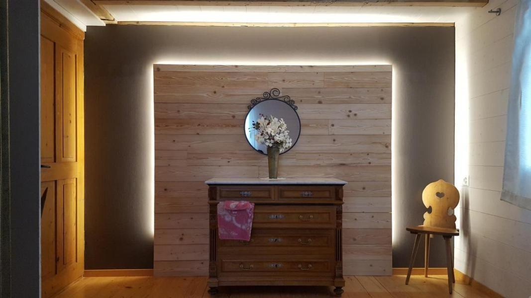 Wir haben die Wohnung mit einem restaurierten Küchenmöbel, von unserem Wohnbereich abgetrennt. Das gute Möbelstück haben wir umfunktioniert, damit man durch das Kästli kommunizieren kann (beide Seiten können öffnen) und wir euch über die Durchreiche das Frühstück (auf Bestellung) bereitstellen können. Es ist uns wichtig, dass ihr als Gäste die uneingeschränkte Privatsphäre habt und trotzdem ganz unkompliziert mit uns in Kontakt treten könnt.