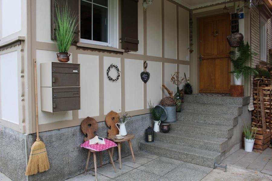 Der Zugang zu der Wohnung geht über den grosszügigen sonnigen Balkon. Es hat einen Vorbau mit Garderobe und Entrée, bevor sie in den Wohnbereich treten.