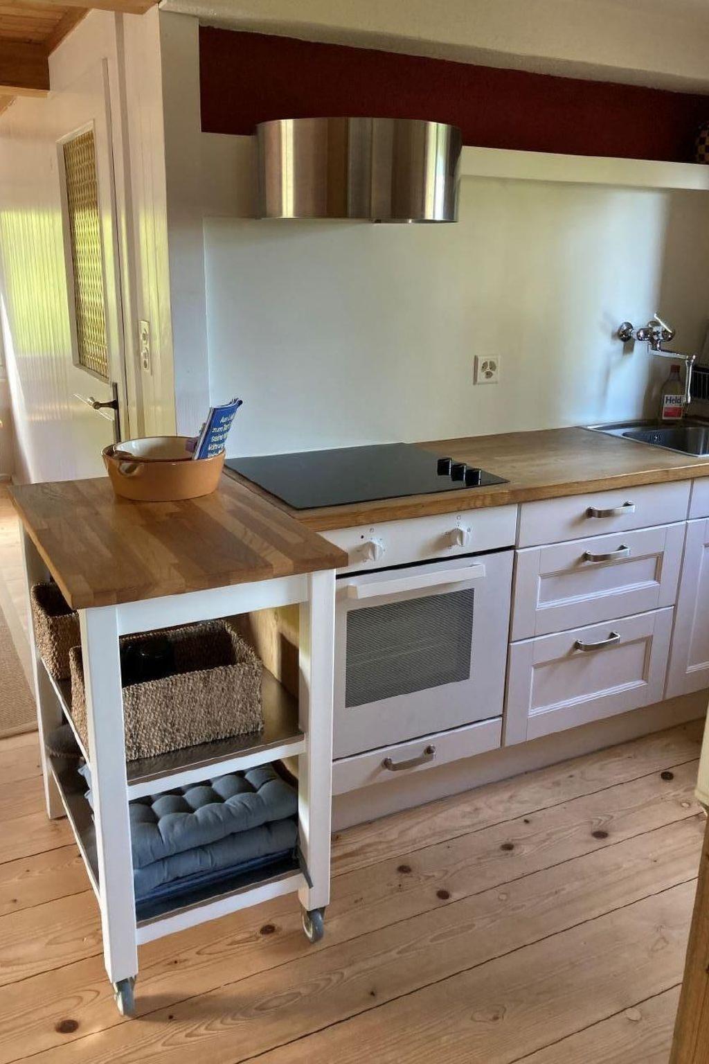 Das Haus ist modern und sehr hochwertig eingerichtet. Ein wunderschöner grosser Holzofen strahlt Gemütlichkeit aus und die vielen Fenster lassen grosszügig Licht ins Hausinnere. Der Boden ist aus hellem Tannenholz, die Wände sind weiss gestrichen. Im Schlafzimmer gibt es einen hellen Wollteppich. Sie dürfen sich auf hochwertige Heimtextilien freuen.