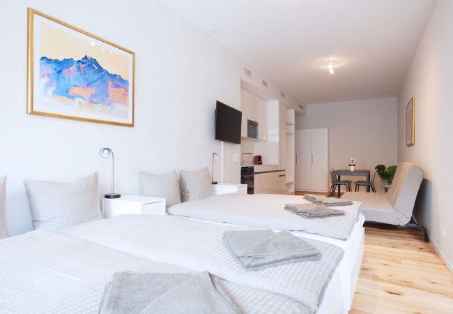 Das moderne Studio benannt nach dem Schweizer Maler Ferdinand Hodler bietet einen einmaligen Wohlfühlkomfort und macht Ihre Ferien garantiert zu einem einzigartigen Erlebnis. Das hübsche Studio hat ein geräumiges Wohn-/Schlafzimmer, das ausgestattet ist mit zwei kleinen Doppelbetten und einem Sofa mit Ausziehfunktion. Außerdem steht Ihnen eine Sitzgelegenheit mit Esstisch und Stühlen zur Verfügung. Die offene Küche bietet alles was Sie benötigen, um ein köstliches Essen zuzubereiten. Sie finden dort einen Geschirrspüler, Backofen, Kühlschrank mit Gefrierfach, eine Nespresso Maschine und viele weitere kleine Extras. Selbstverständlich verfügt das Studio über ein privates Badezimmer mit Dusche und WC. Das Studio hat zudem eine Terrasse auf der Sie herrlich entspannen und die Seele baumeln lassen können. Das Studio ist zum Innenhof ausgerichtet und hier genießt man trotz der Lage inmitten der Stadt wunderbare Ruhe.