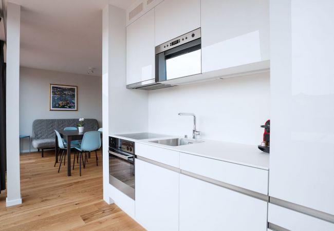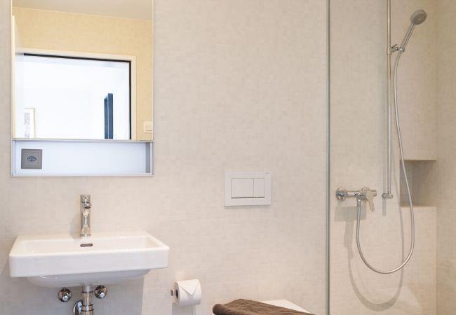 Die offene Küche verfügt über eine komplette Ausstattung – Sie finden hier alles was Sie zum Kochen benötigen, Geschirrspüler, Backofen, Herdplatten, Kühlschrank mit Gefrierfach und Nespresso Kaffeemaschine. Das Badezimmer verfügt über Dusche, WC, Haartrockner und diverse Hygieneartikel.