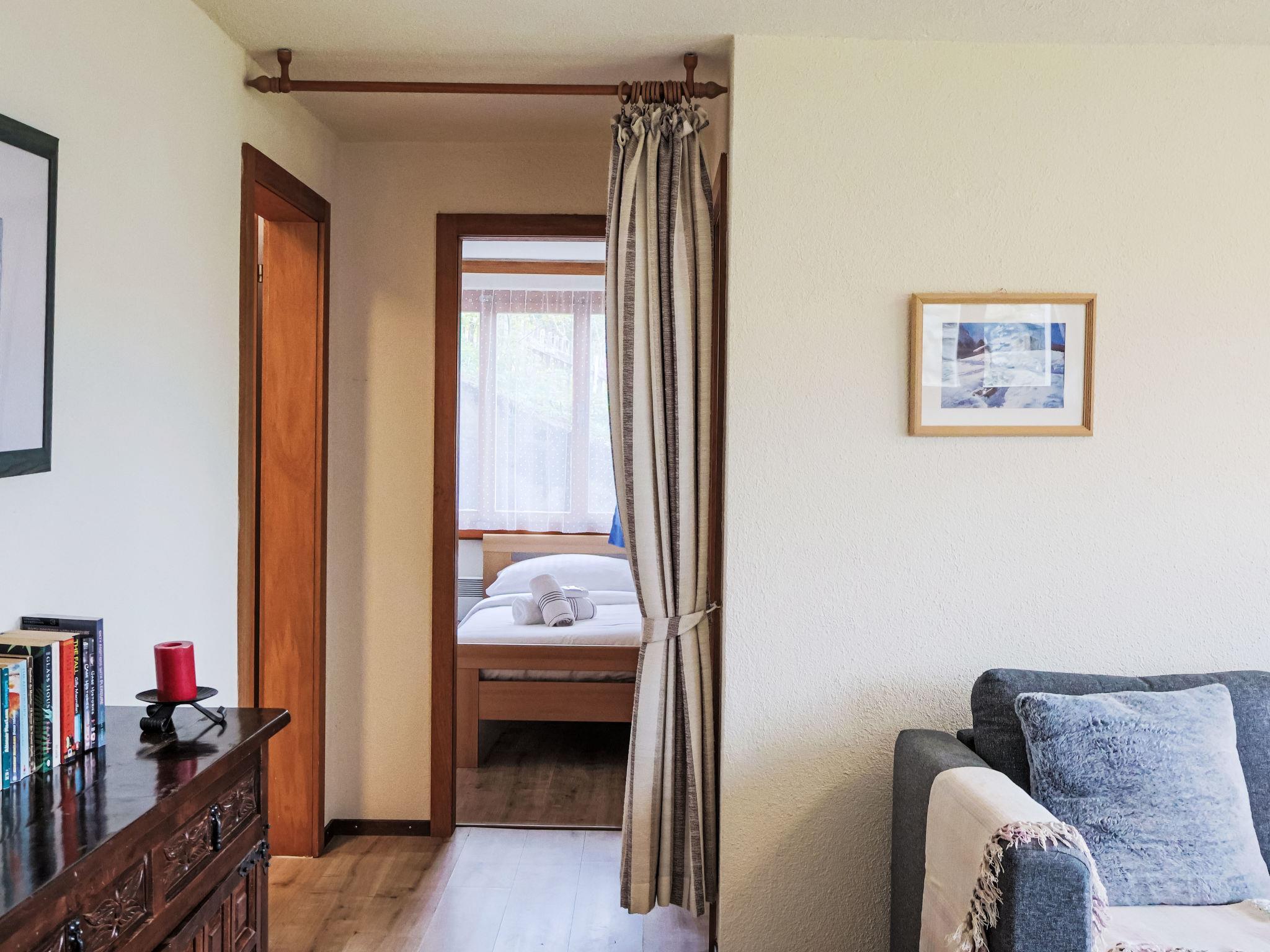 "Chalet Schöpfli", 3-Zimmer-Wohnung 65 m2, im Erdgeschoss, Südlage. Hell, teilweise renoviert im Jahre 2025, sehr zweckmässig und gemütlich eingerichtet: grosses Wohn-/Esszimmer mit Essecke und E-Heizung. Ausgang zum Garten. 1 Zimmer mit 1 franz. Bett (160 cm, Länge 200 cm). 1 Zimmer mit 2 Betten (90 cm, Länge 200 cm). Offene Küche (4 Kochplatten, Backofen, Toaster, Wasserkocher, Mikrowelle, elektrische Kaffeemaschine, Fondue Set (Käse)). Bad/WC. E-Heizung. Heizung nicht in allen Räumen. Grosser Gartensitzplatz, Südlage. Terrassenmöbel, Liegestühle. Herrliche Panoramasicht auf den See und die Berge. Zur Verfügung: Kinderhochstuhl, Babybett bis 2 Jahre (extra), Haartrockner. Internet (WLAN, gratis). Parkplatz. Bitte beachten: eigener Eingang.