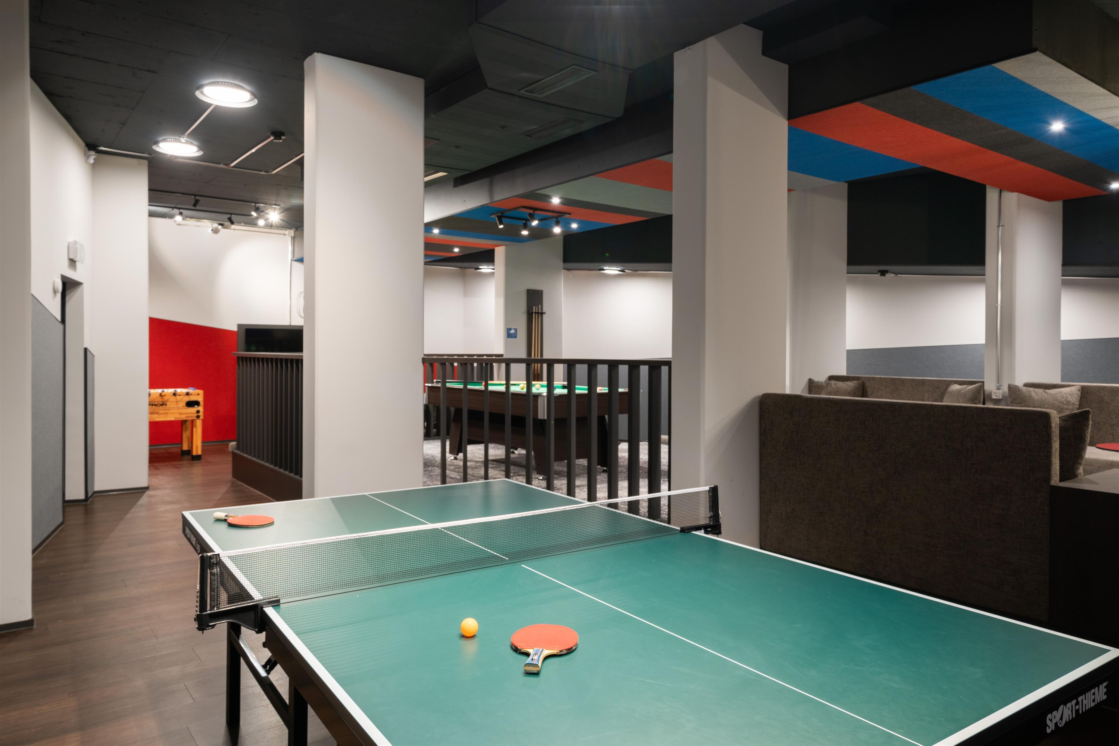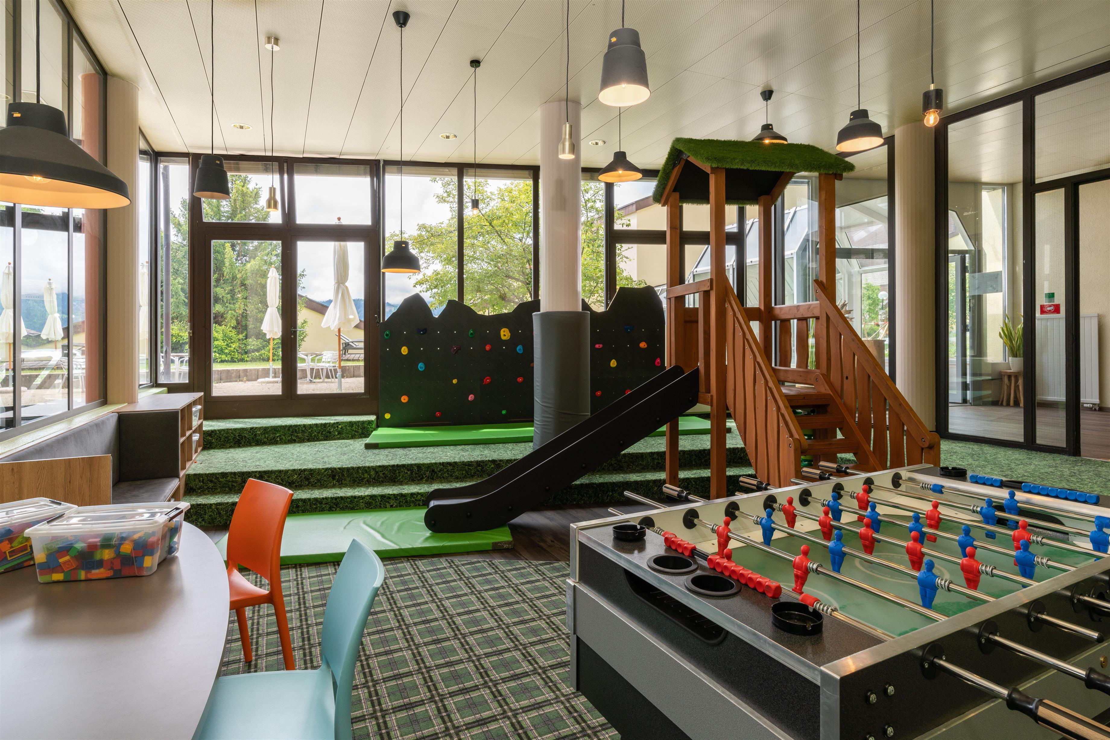 Rezeption, Restaurant, Bar, Frühstücksraum, Aufenthaltsraum, Hallenbad, Wellnessbereich (Biosauna, Dampfbad, Finnische Sauna, Ruheraum, Erlebnisdusche, Infrarotwärmekabine, Massage (extra), Fitnessraum, Tischtennis, Billiard, Spielzimmer, Fahrstuhl, Einstellraum für Fahrräder, Sonnenterrasse, Skiraum, Zentralheizung, Waschmaschine/Wäschetrockner (zur Mitbenutzung, extra). Frühstück möglich (extra), Zimmerservice möglich (extra). Reservierter Parkplatz in Tiefgarage. Ladestationen für Elektrofahrzeuge.