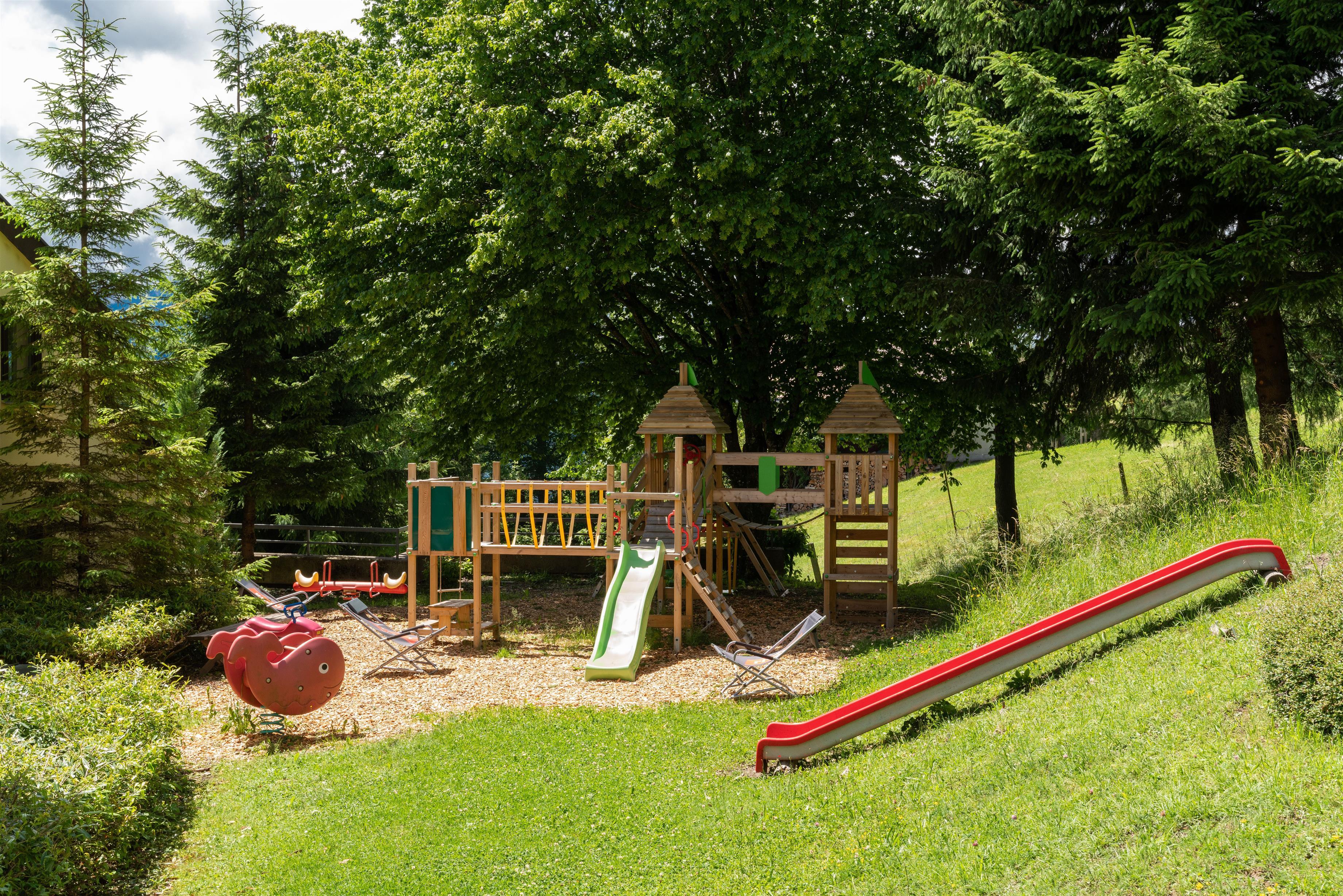 Restaurant, grosser Garten, Liegestühle, Kinderspielplatz, Minigolf.