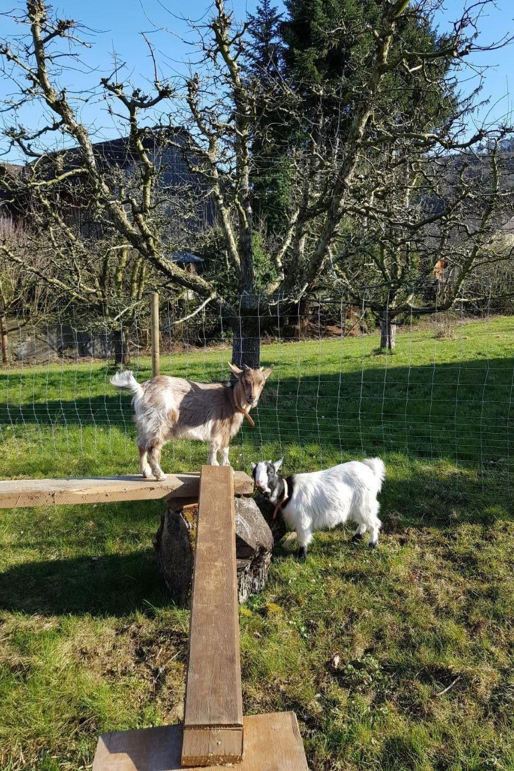 Im Freien erwartet Sie ein wahrhaftiges Spielparadies. Ein Riesentrampolin und eine Baumhütte sorgen für endlose Unterhaltung, während Sie sich auf unserem Hof mit echter Landwirtschaft näherkommen können. Es besteht die Möglichkeit, bei der Fütterung der Tiere zu helfen, und katzen, Hühner, Kaninchen sowie Zwergziegen freuen sich darauf, von Ihnen entdeckt zu werden. Die Umgebung bietet herrliche Wanderwege, Radwege und Bikestrecken für Sport- und Freizeitaktivitäten.