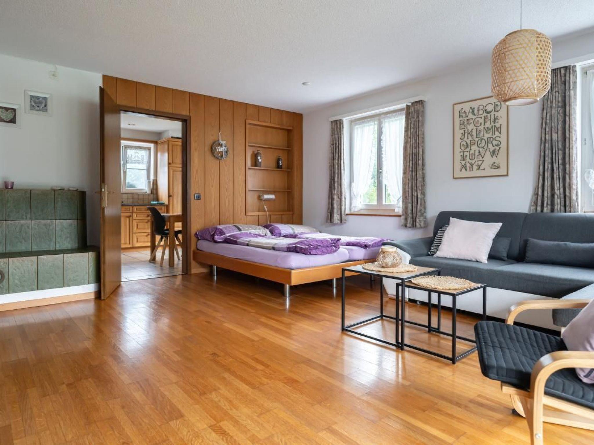 Unsere helle und rollstuhlgängige Parterrewohnung ist ideal für Familien oder Gruppen, die Komfort schätzen. Sie verfügt über eine große Stube mit 3 Schlafgelegenheiten, ein Dreibettzimmer, eine Wohnküche sowie ein Dusch-/WC. Zur modernen Ausstattung gehören ein Internetanschluss und eine praktische Kapselkaffeemaschine. Für die kleinen Gäste sind viele Spielsachen, ein Babybett, Hochstuhl, Kindergeschirr, Rausfallschutz und ein Kinderwagen (Buggy) verfügbar, um den Aufenthalt so angenehm wie möglich zu gestalten.