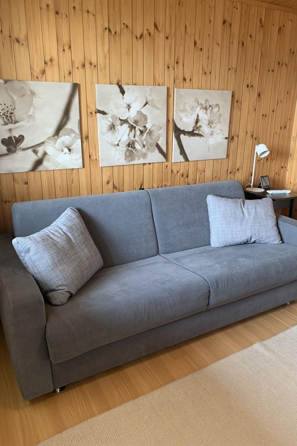 Die Wohnung verfügt über drei gut ausgestattete Räume: ein Esszimmer mit integrierter Küche, ausgestattet mit Geschirrspüler und Bodenheizung, ein separates Wohnzimmer mit Schlafsofa für zwei Personen und TV, sowie ein Schlafzimmer mit Doppelbett und zusätzlichem Ausziehbett. Das Badezimmer bietet eine Dusche und ein WC und ist ebenfalls mit Bodenheizung ausgestattet. WLAN steht in der gesamten Unterkunft zur Verfügung.