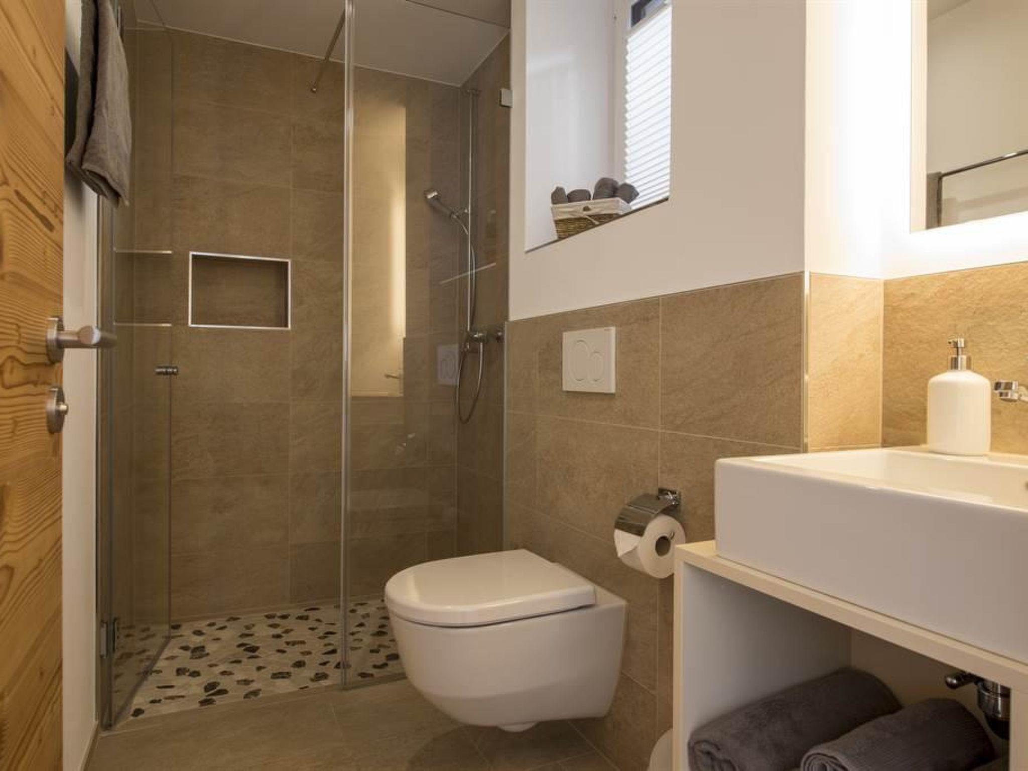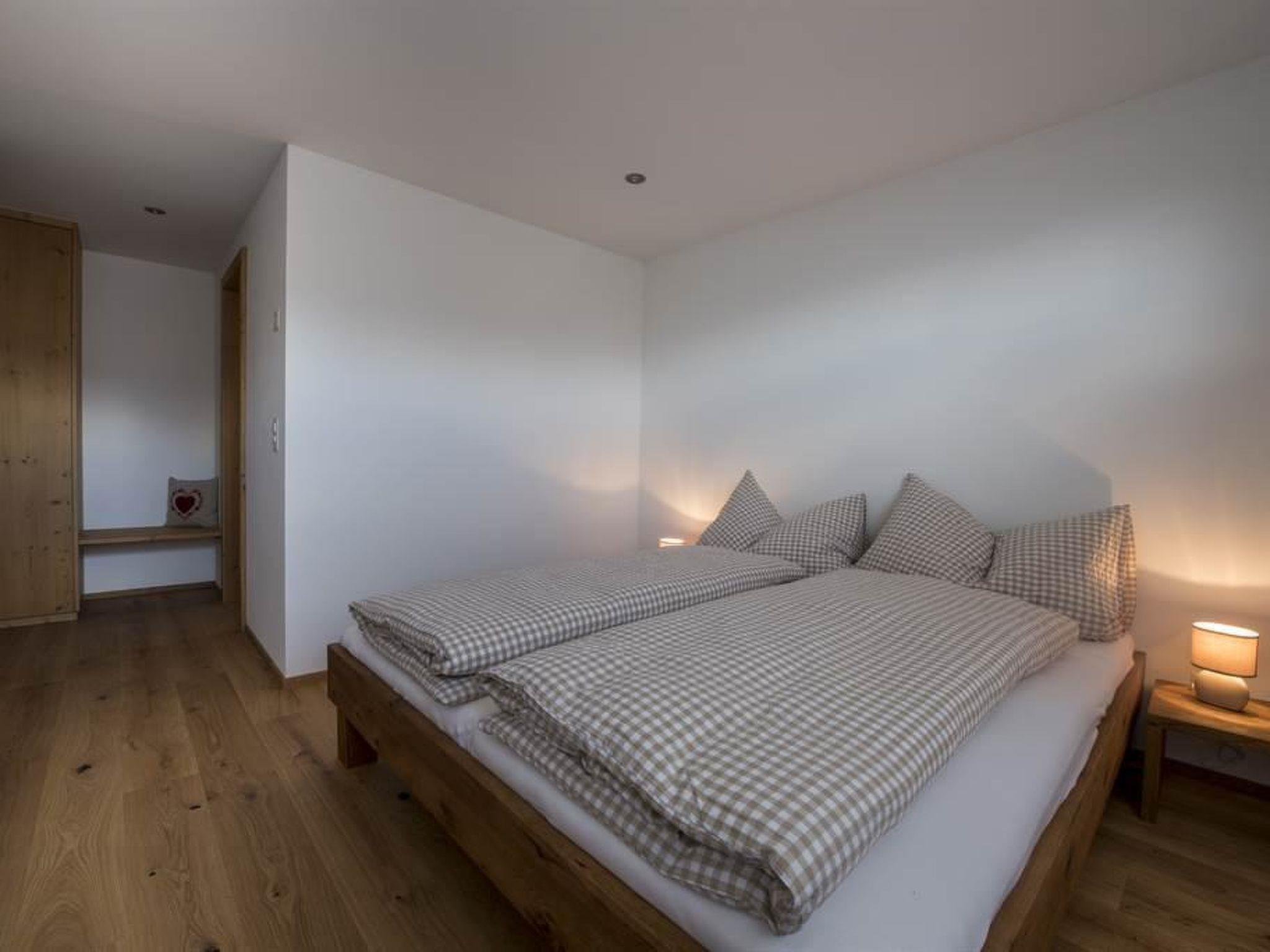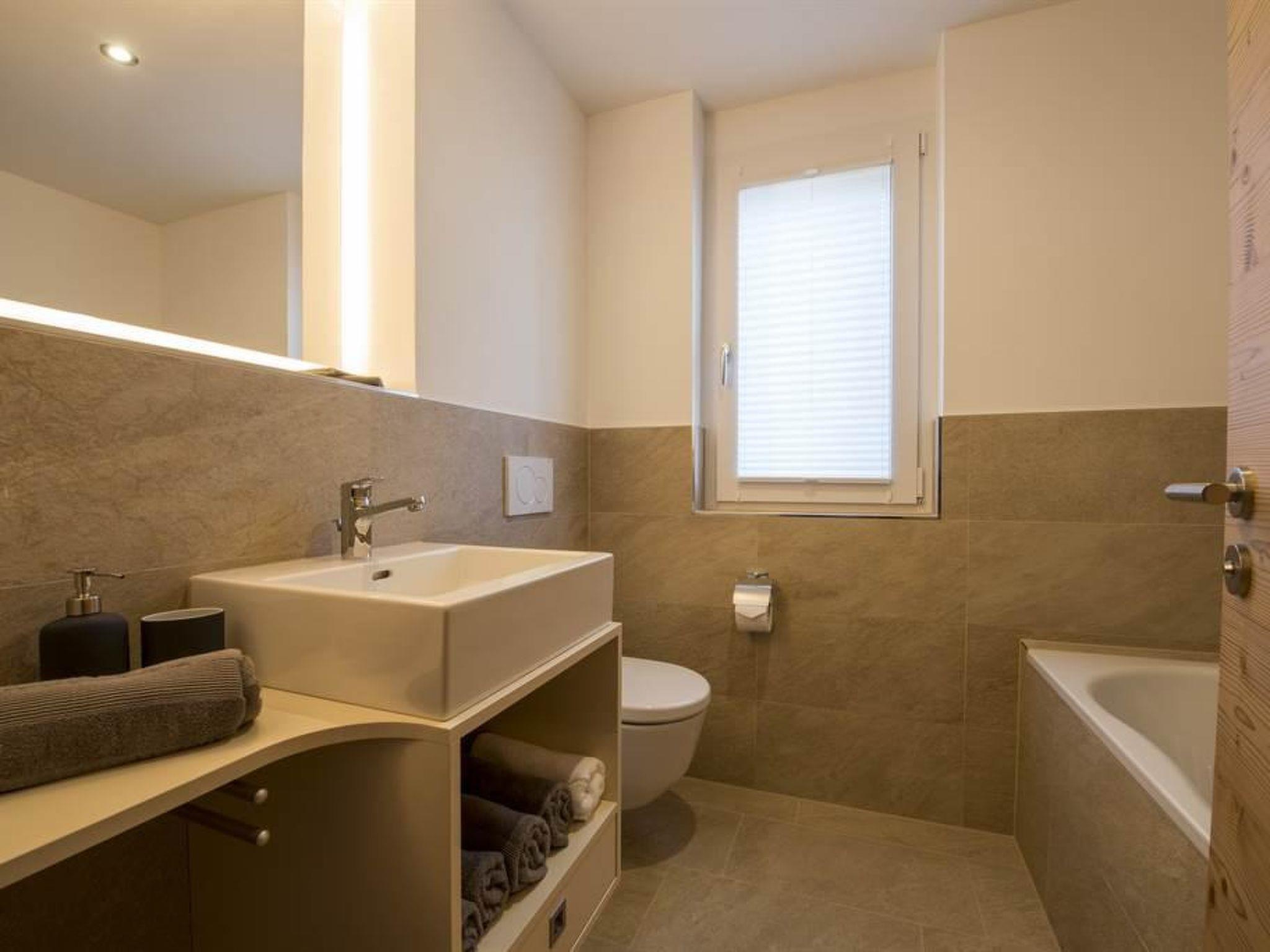 Die 4 1/2-Zimmerwohnung verfügt über drei Schlafzimmer: zwei Zimmer mit je zwei Einzelbetten sowie ein Zimmer mit einem Doppelbett. Die Wohnung ist mit zwei Nasszellen ausgestattet – eine mit Dusche und WC, die andere mit Badewanne und WC. Die offene Küche ist mit einem Geschirrspüler eingerichtet und führt in einen grosszügigen Wohnbereich mit direktem Zugang zum sonnigen Süd-Balkon.