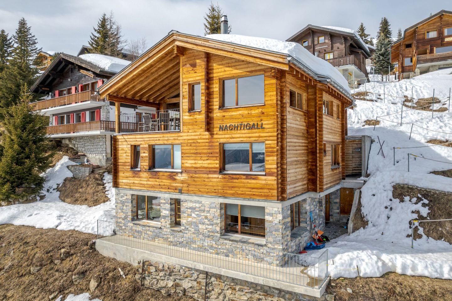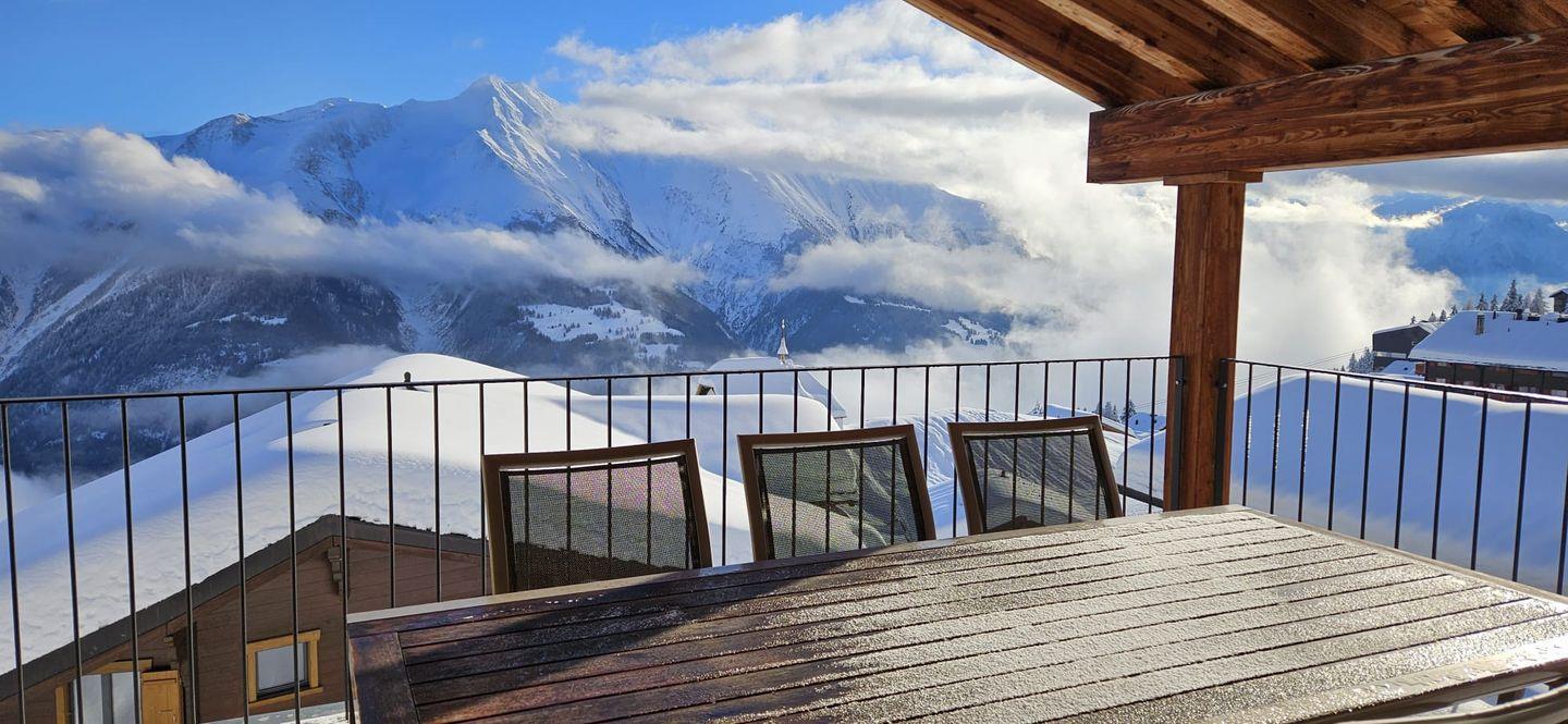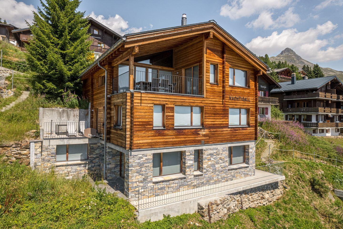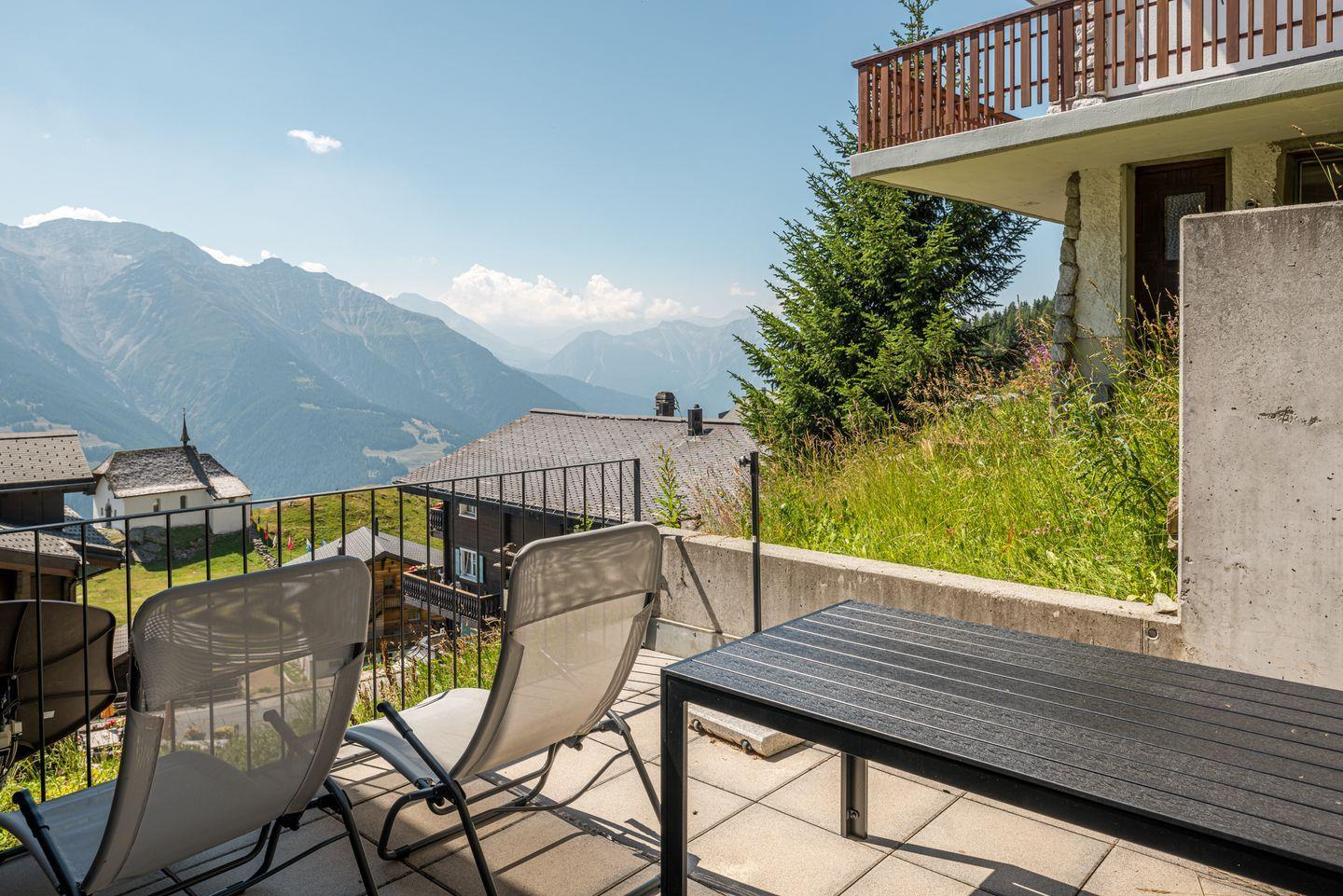 Das moderne, großzügige und komfortable Chalet mit zwei Wohnungen liegt ideal im Zentrum der Bettmeralp in der Mitte des Aletsch-Plateaus.