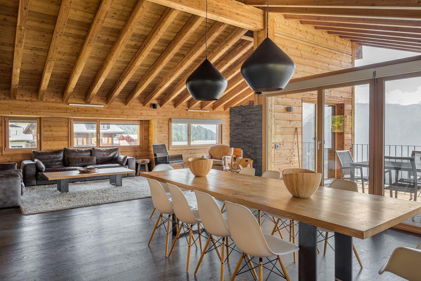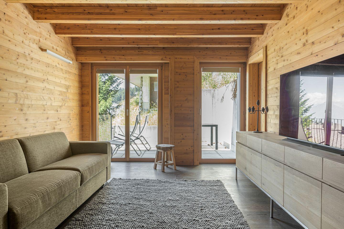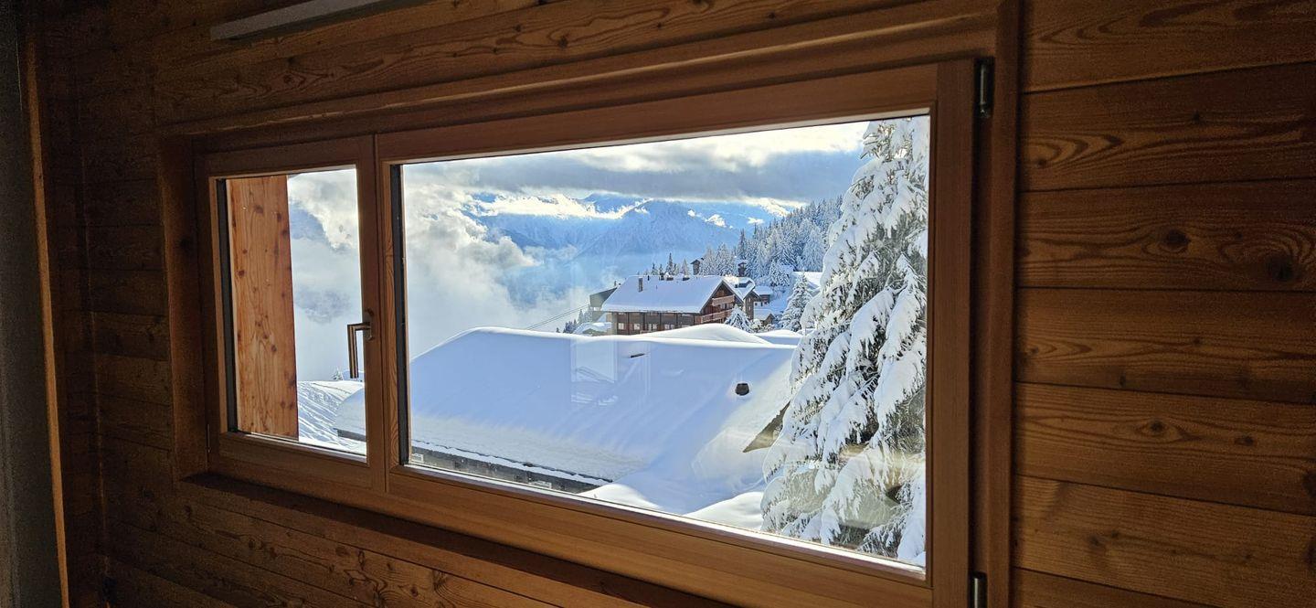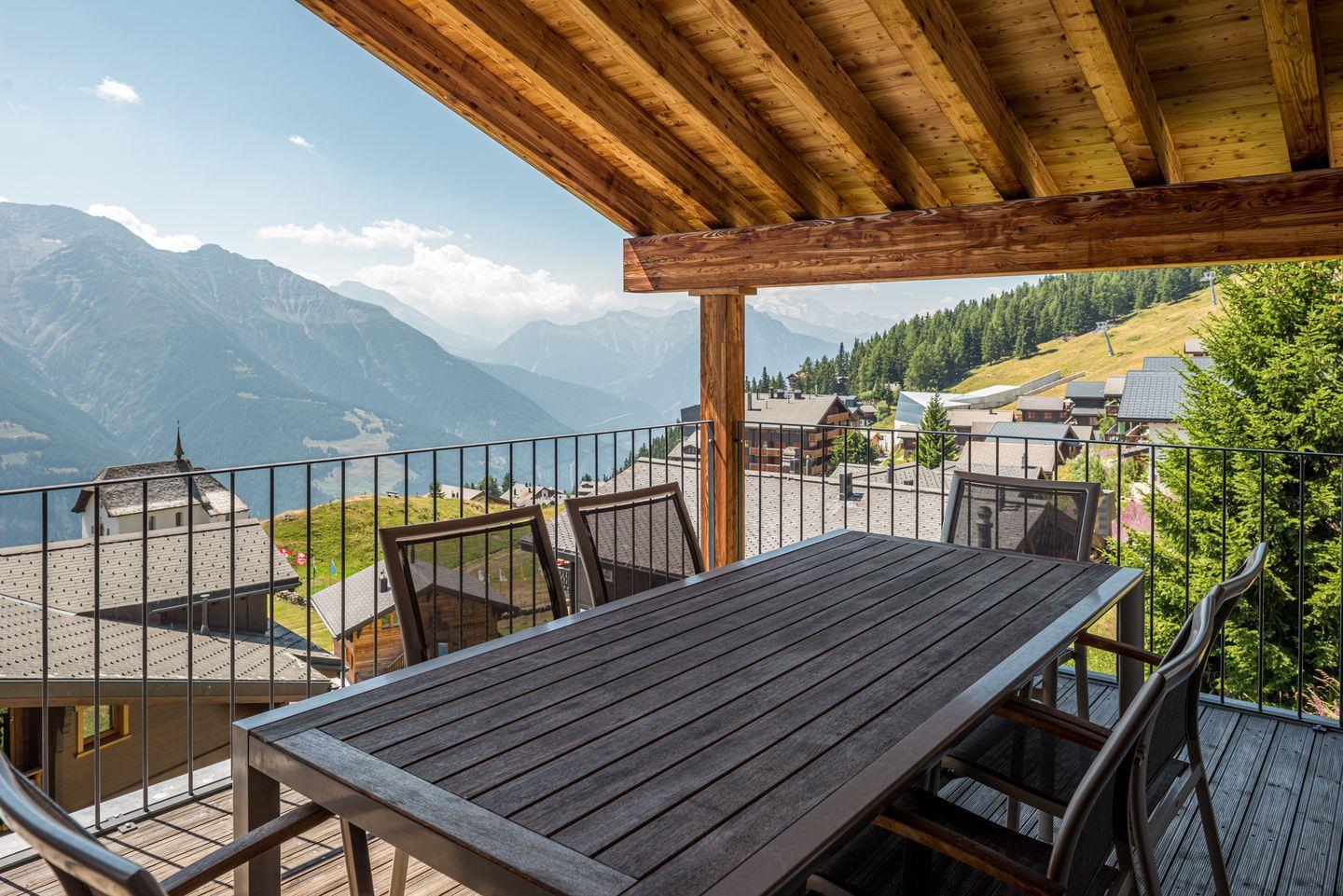 Das moderne, großzügige und komfortable Chalet mit zwei Wohnungen liegt ideal im Zentrum der Bettmeralp in der Mitte des Aletsch-Plateaus.