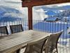Dachgeschoss: Grosser Wohn- und Essbereich mit offenem Kamin. Offene moderne Küche in zwei Räume,Tages-WC. Grosse Loggia (Balkon) mit Sicht auf die Kapelle „Maria zum Schnee“ Süden und die Walliser Bergwelt.
