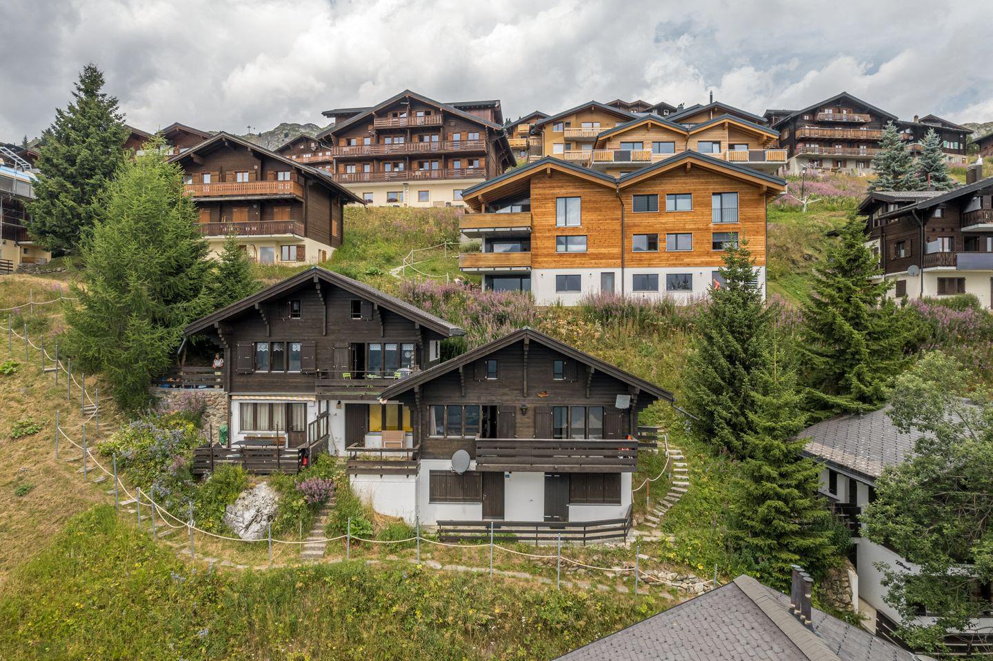 Im Sommer direkt am Wandergebiet. Die Häuserreihe ist nach Süden gerichtet mit Aussicht auf das gegenüberliegende Bergpanorama.
