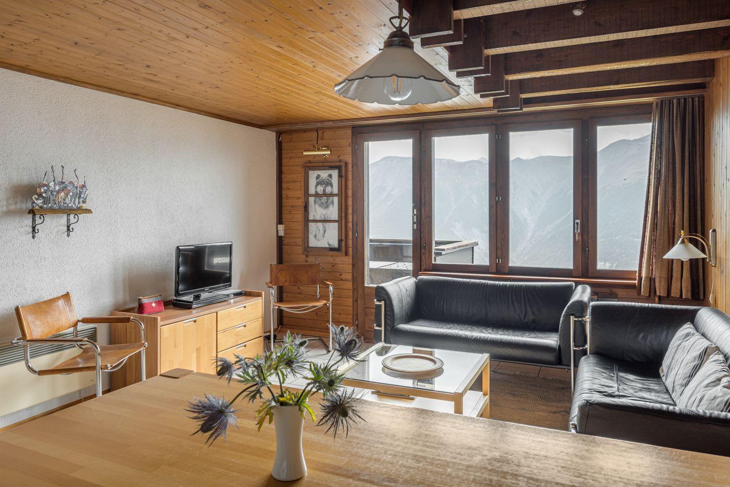 Geniessen Sie auf dem Sonnenplateau die herrliche Aussicht auf die Walliser Berge. Ruhig gelegen, unterhalb des Dorfes und oberhalb der talwärts führenden Strasse, welche im Winter zur Piste hin zum nahe gelegenen Skilift und Winterwanderweg nach Betten wird.