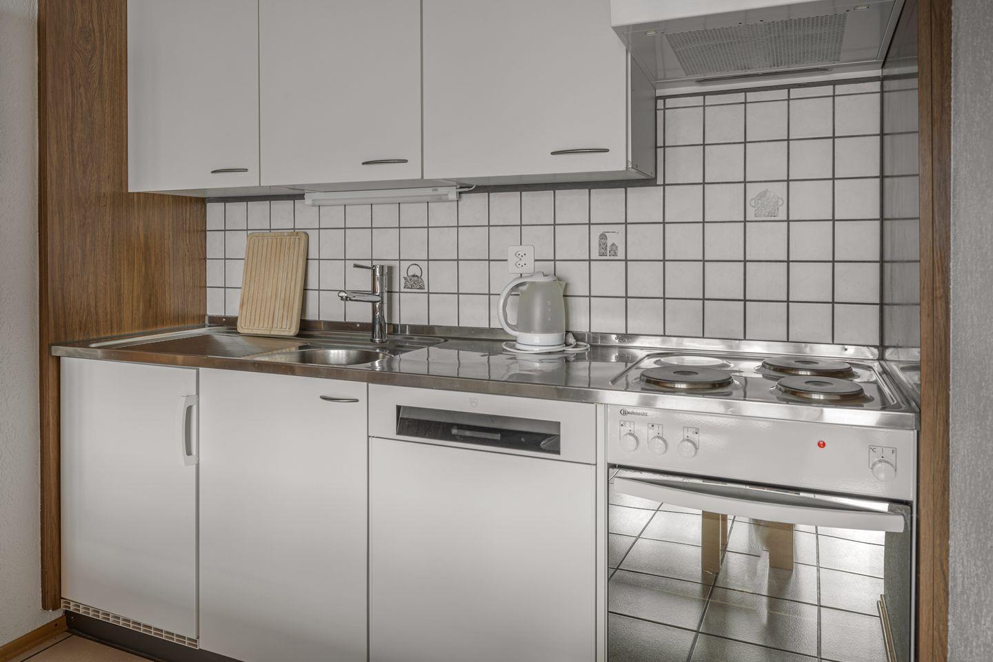 Eingangsebene mit Garderobe, Wohn- Essraum mit offener Küche, Südbalkon, 1 Doppelbettzimmer und Badezimmer mit Bad/WC/Lavabo.