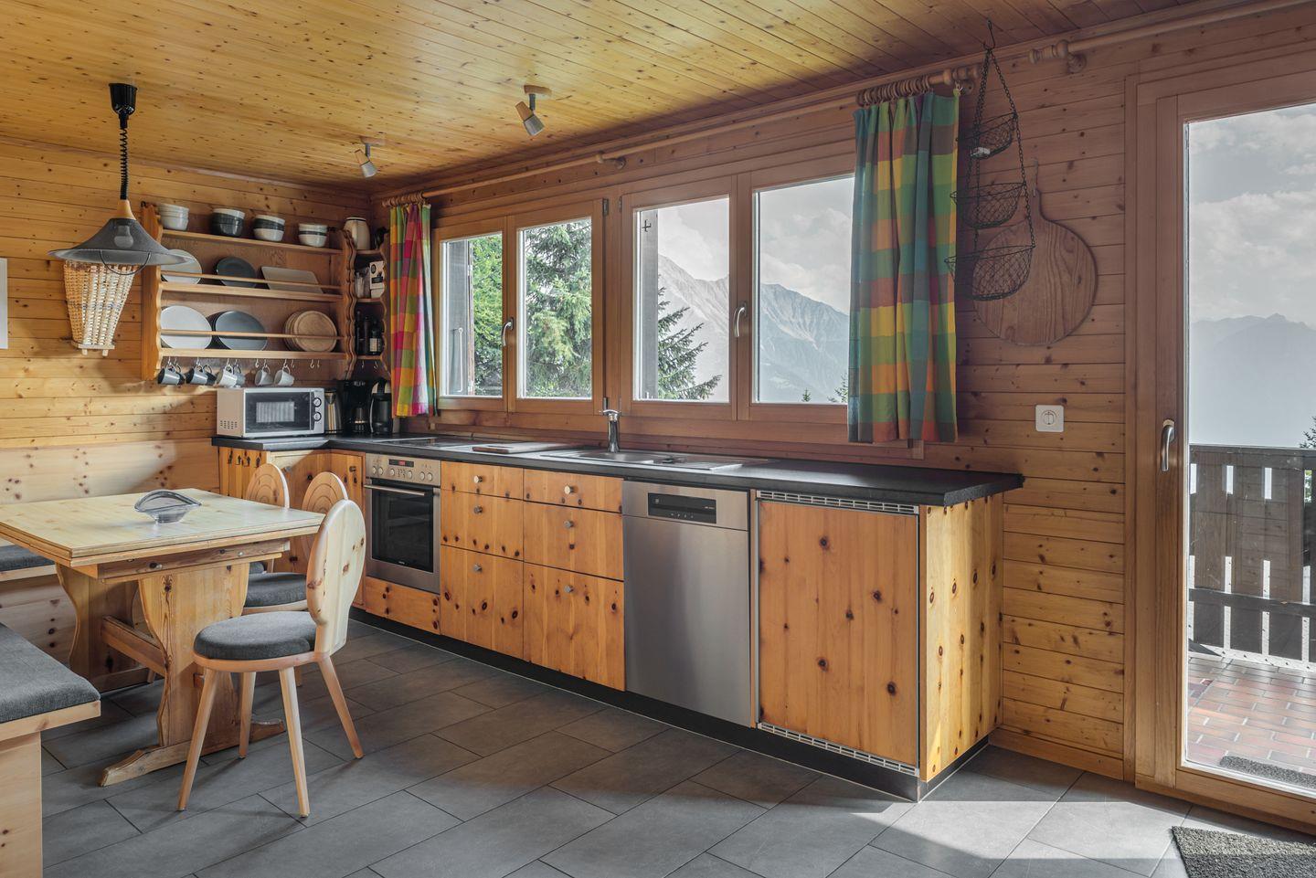 Das Haus richtet sich mit dem Sitzplatz nach dem ruhigen Süden, mit freier Aussicht auf die gegenüberliegenden Berge bis hin zu den Walliser Alpen und Matterhorn.