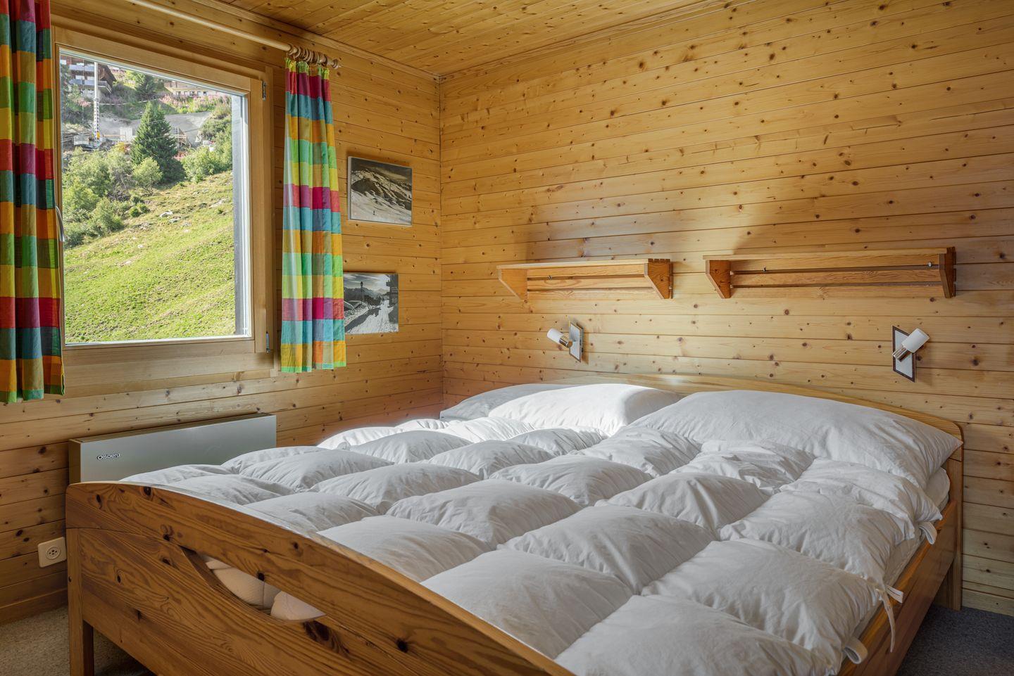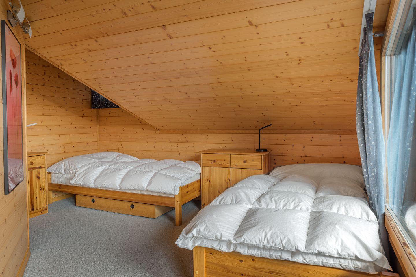 Dachgeschoss: 1 Doppelbettzimmer und 1 Zimmer mit 2 Einzelbetten mit Südbalkon, Dusche/WC/Lavabo.