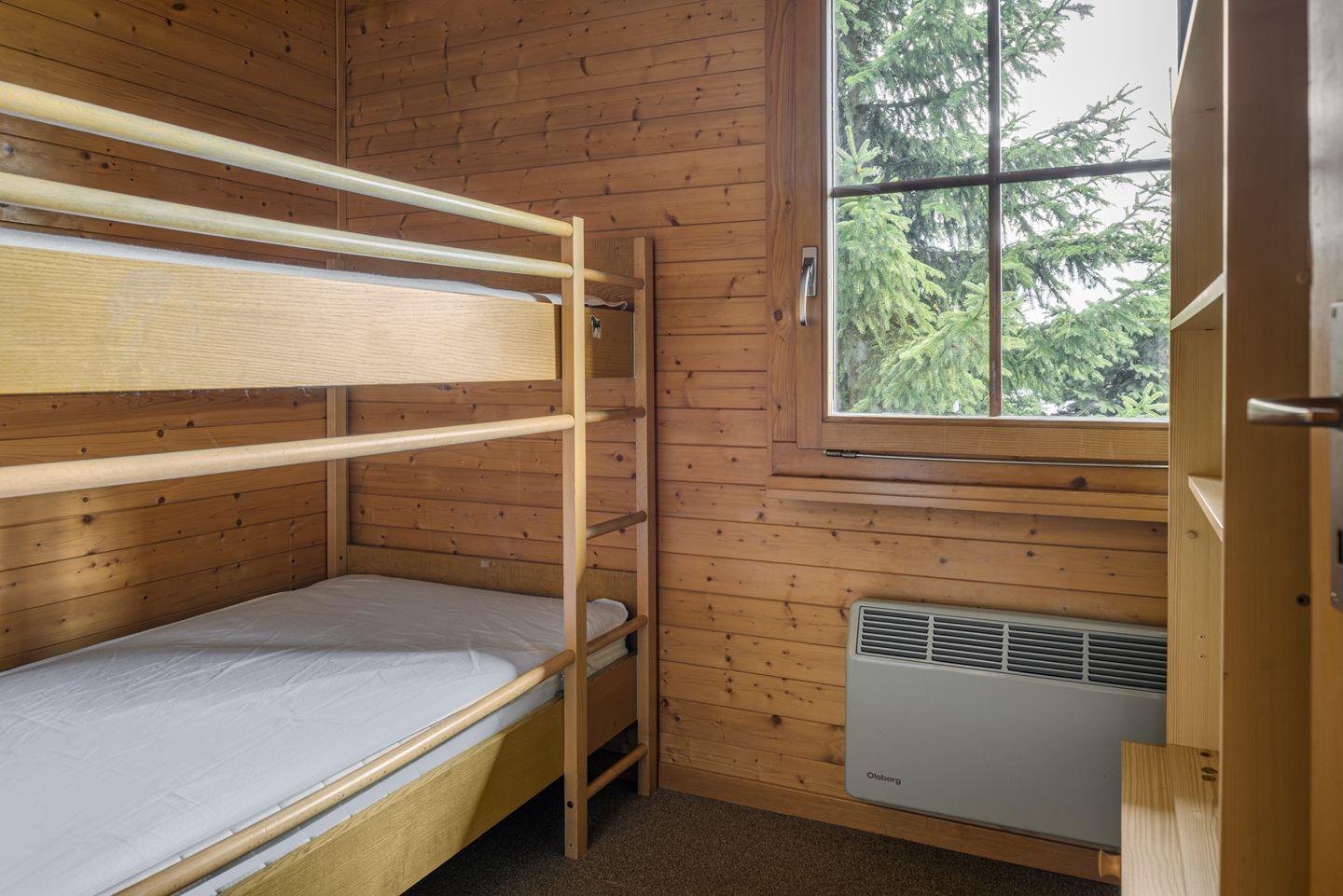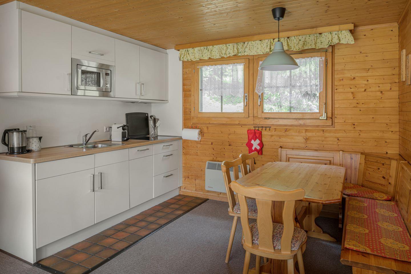 Die Wohnung betreten Sie über einen Windfang, der Raum für Ski- und Wanderschuhe bietet. Ein offener Wohn- und Essbereich lädt zum gemütlichen Verweilen ein. Auf dem großzügigen Sofa lassen sich am Kamin die kühleren Abende gut verbringen. In der neuen Küche finden Sie alles, was Sie brauchen, inklusive eines Geschirrspülers. Durch das praktische, hochwertige Bett mit Schubkästen ist im Schlafzimmer auch Platz für ein zusätzliches Babybett. Das Kinderzimmer bietet zweckmäßig ein Stockbett und Regal, in dem auch allerlei Spielzeug zu finden ist.