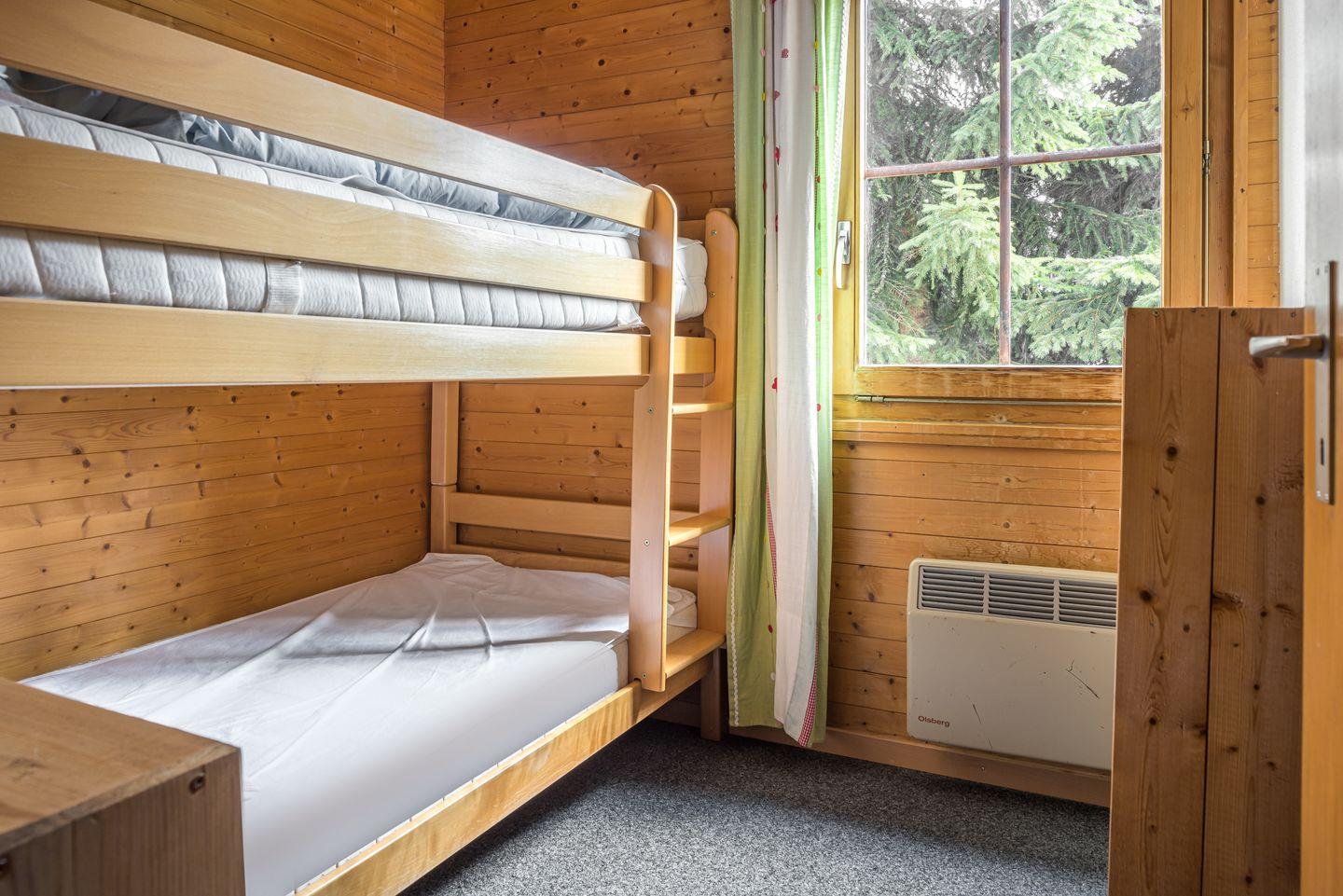 Die Wohnung betreten Sie über einen Windfang, der Raum für Ski- und Wanderschuhe bietet. Ein offener Wohn- und Essbereich lädt zum gemütlichen Verweilen ein. Auf dem großzügigen Sofa lassen sich am Kamin die kühleren Abende gut verbringen. In der neuen Küche finden Sie alles, was Sie brauchen, inklusive eines Geschirrspülers. Durch das praktische, hochwertige Bett mit Schubkästen ist im Schlafzimmer auch Platz für ein zusätzliches Babybett. Das Kinderzimmer bietet zweckmäßig ein Stockbett und Regal, in dem auch allerlei Spielzeug zu finden ist.
