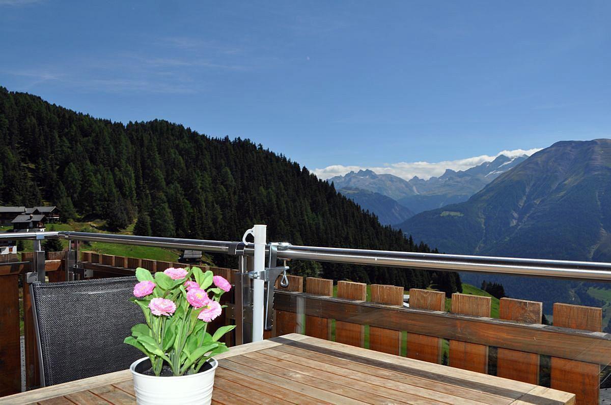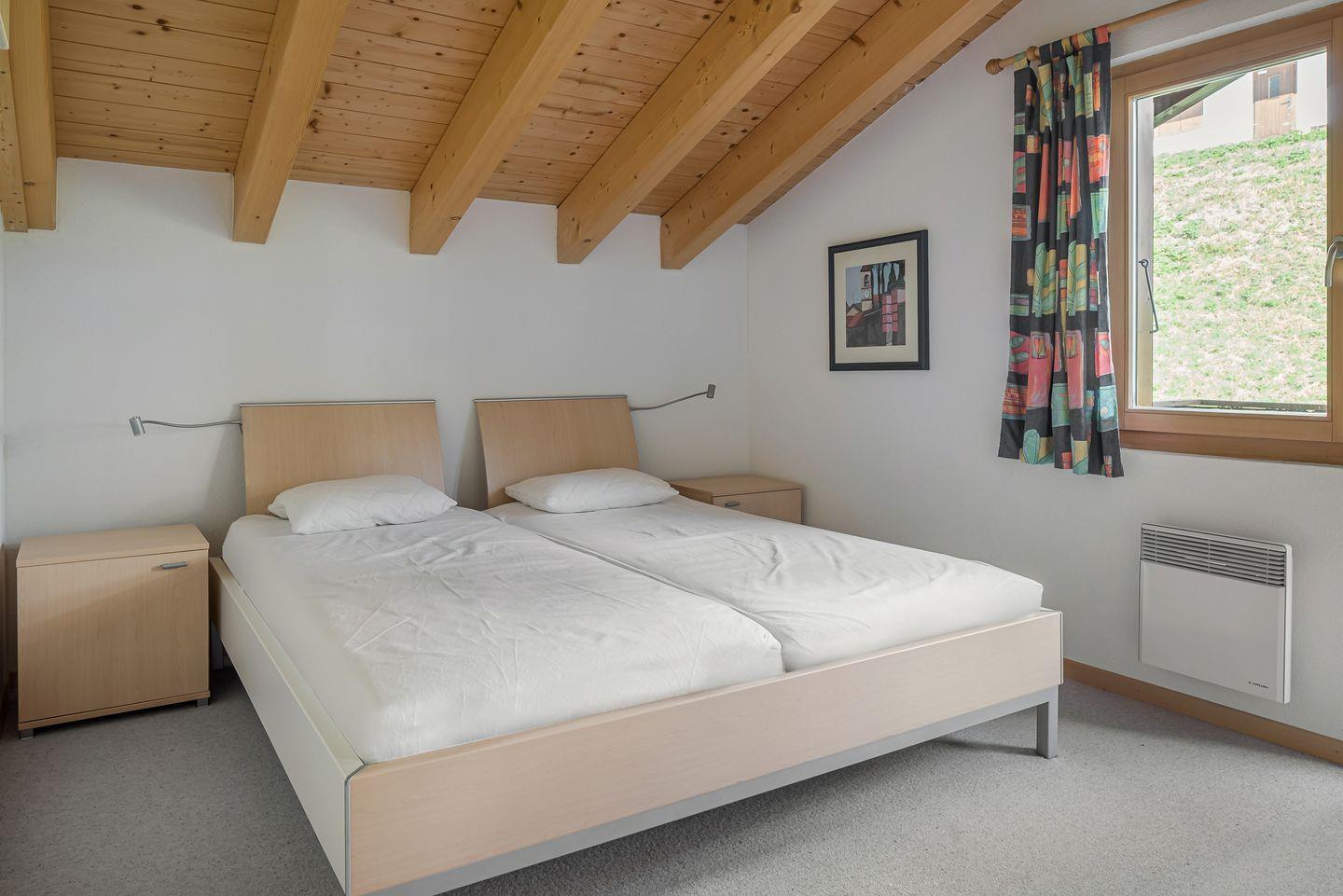 Das Haus ist nach Süden ausgerichtet und bietet einen freien Blick auf die gegenüberliegenden Gomser Berge bis hin zu den beeindruckenden Walliser Alpen (Mischabel-Gruppe mit dem Dom, 4.545 m). Die Wohnung umfasst 3,5 Zimmer und verfügt über sowohl einen Süd- als auch einen Nordbalkon.