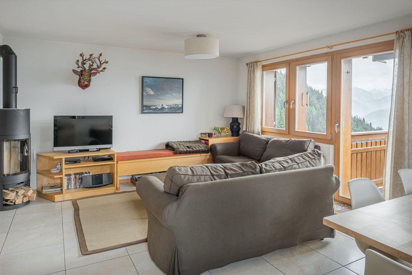 Aufteilung 3 und halb Zimmer Appartement-Wohnung mit Süd- und Westbalkon. Entree mit Garderobe, Wohnzimmer/Kamin mit offene Küche, grossem Südbalkon, 1 Doppelbett- und 1 Dreibettzimmer mit Kajütenbett (mit Doppelliegefläche unten) sowie Westbalkon,WC/Lavabo, Bad/WC.