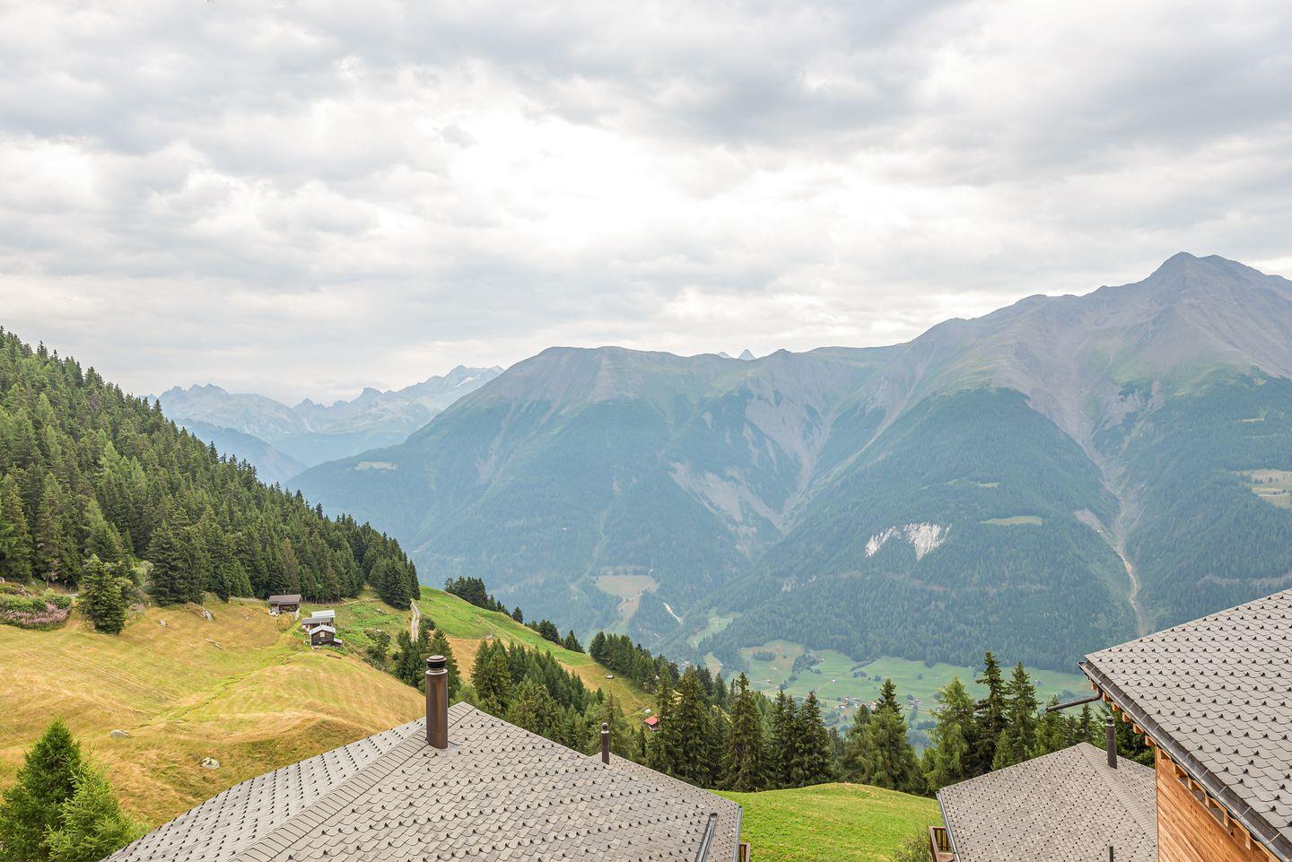 Das Haus ist nach Süden gelegen mit freier Aussicht auf die gegenüberliegenden Gomser Berge bis hin zu den Walliser Alpen (Mischabel-Gruppe mit Dom, 4.545 m).