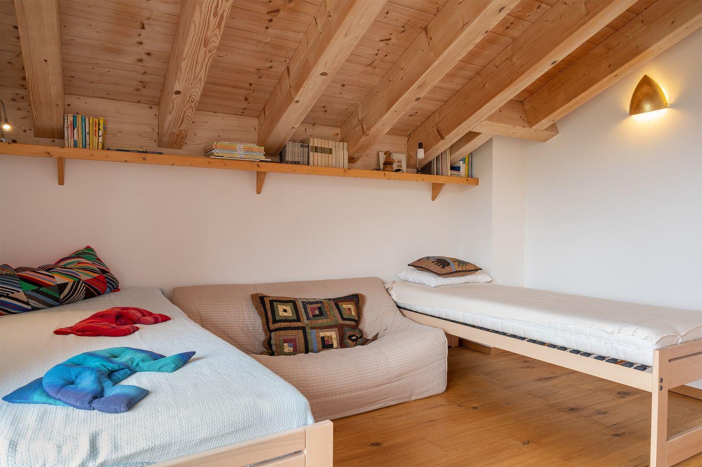 1 Fernsehzimmer mit 2 zusätzlichen Einzelbetten, kein Fernseher im Wohnbereich.