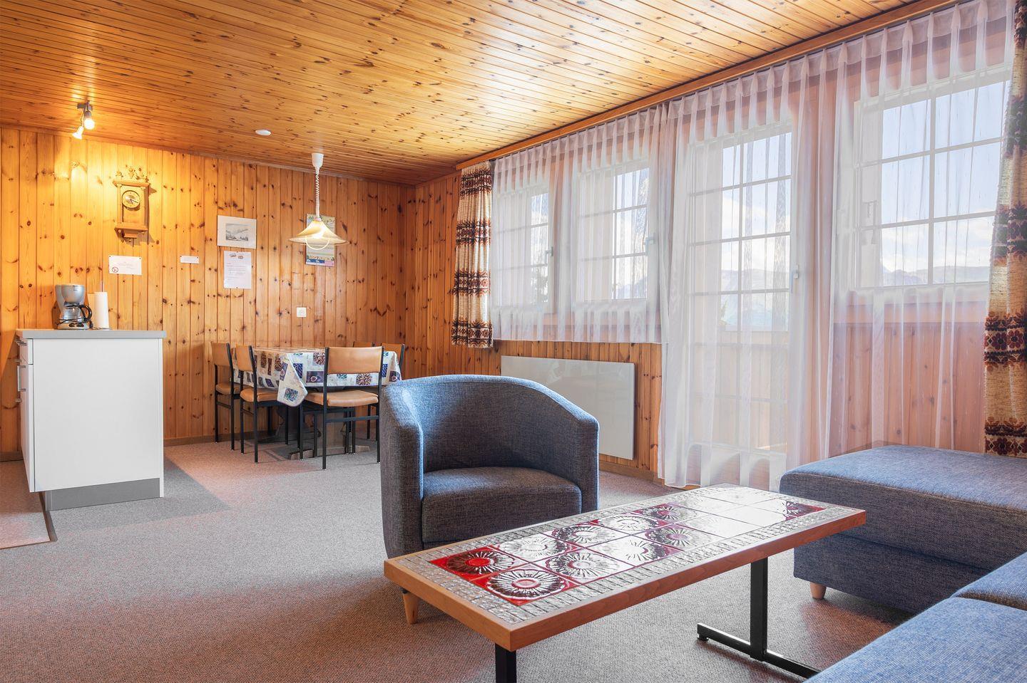 Das Chalet ist ruhig und sonnig gelegen. In nur 15 min zu Fuss von der Bergstation erreichbar oder bequem mit dem Schneetaxi. In 5 min zum Lebensmittelgeschäft, in 2 min am Lift und in 10 min im Dorfzentrum, wo Sie diverse Restaurants oder verschiedene Läden finden.