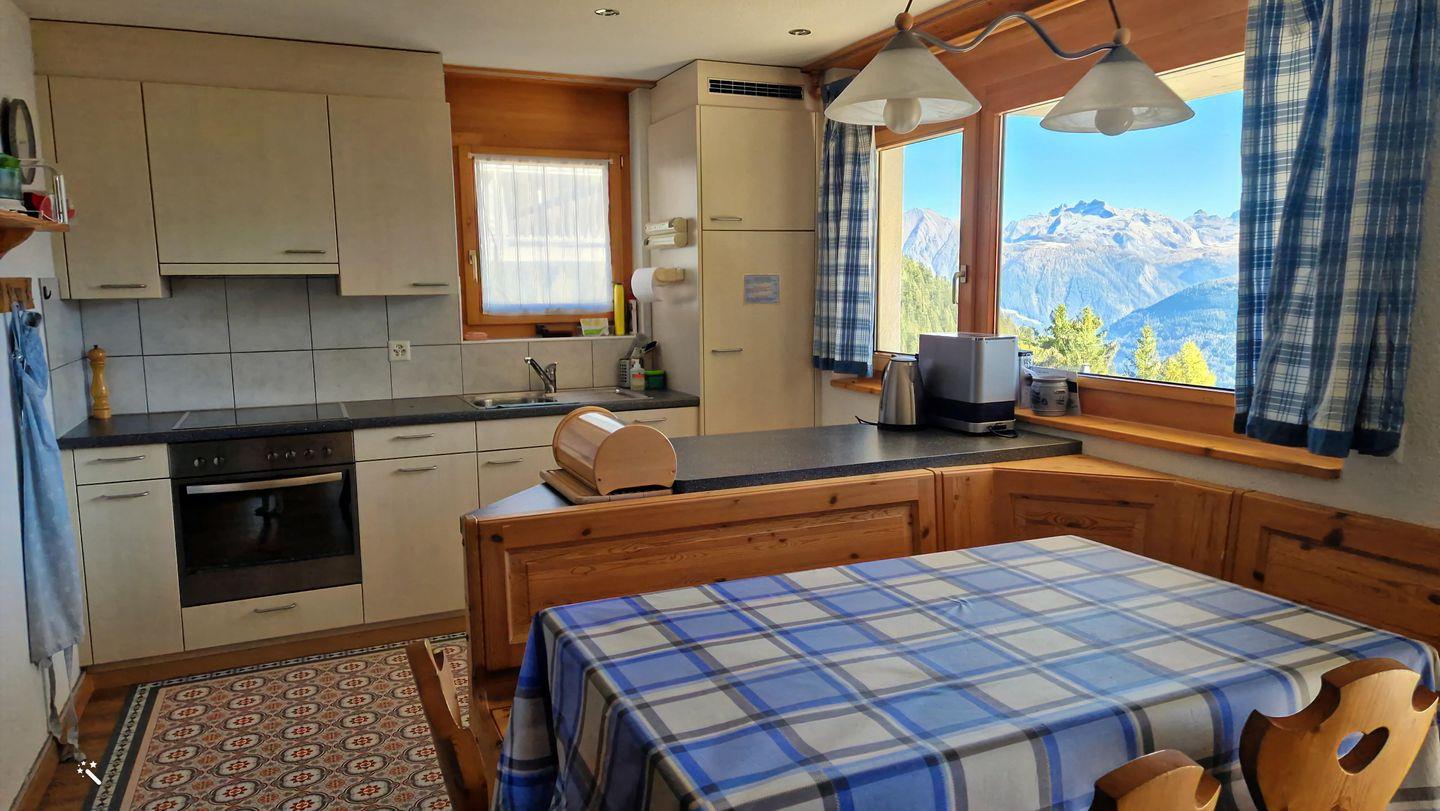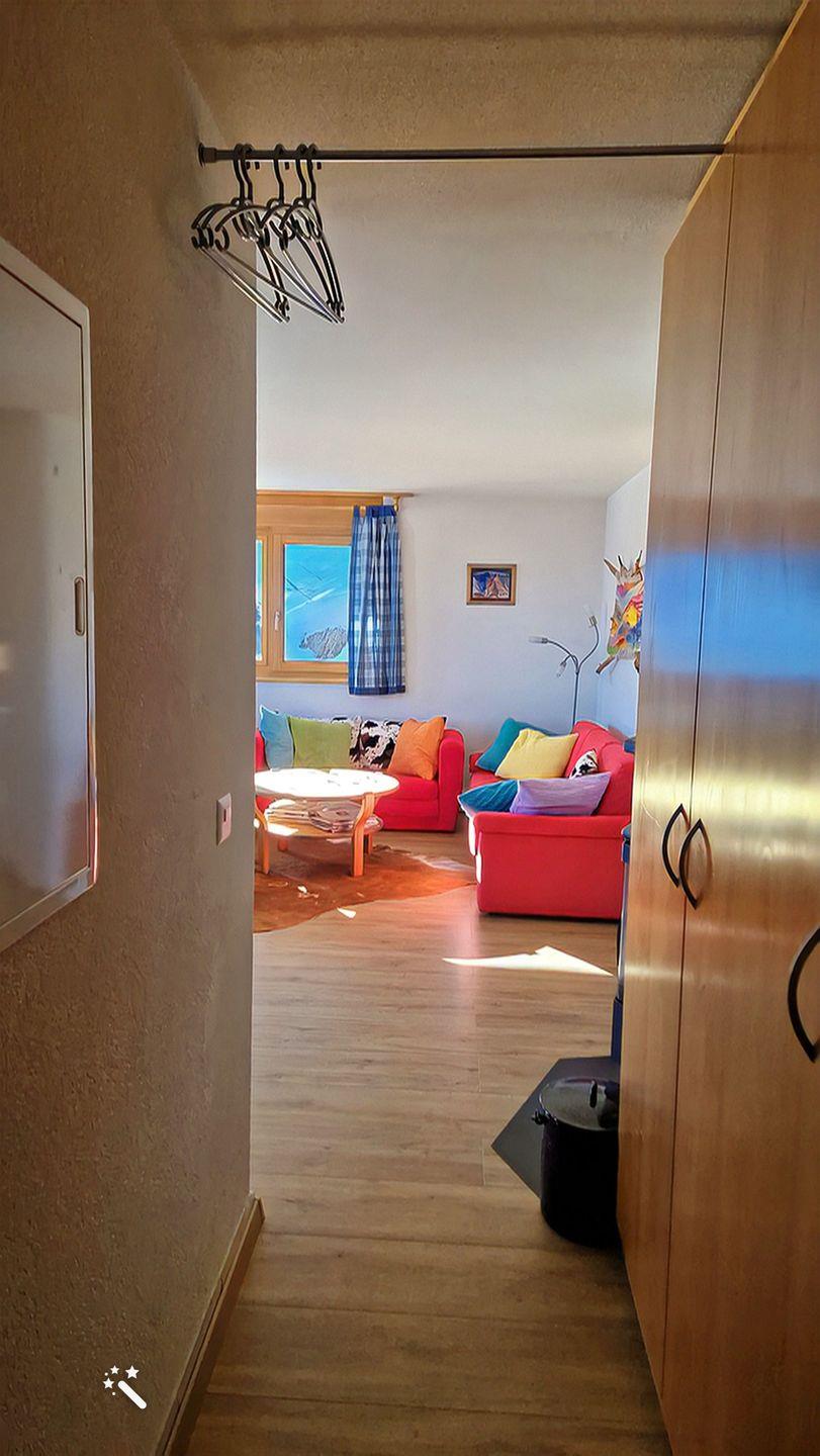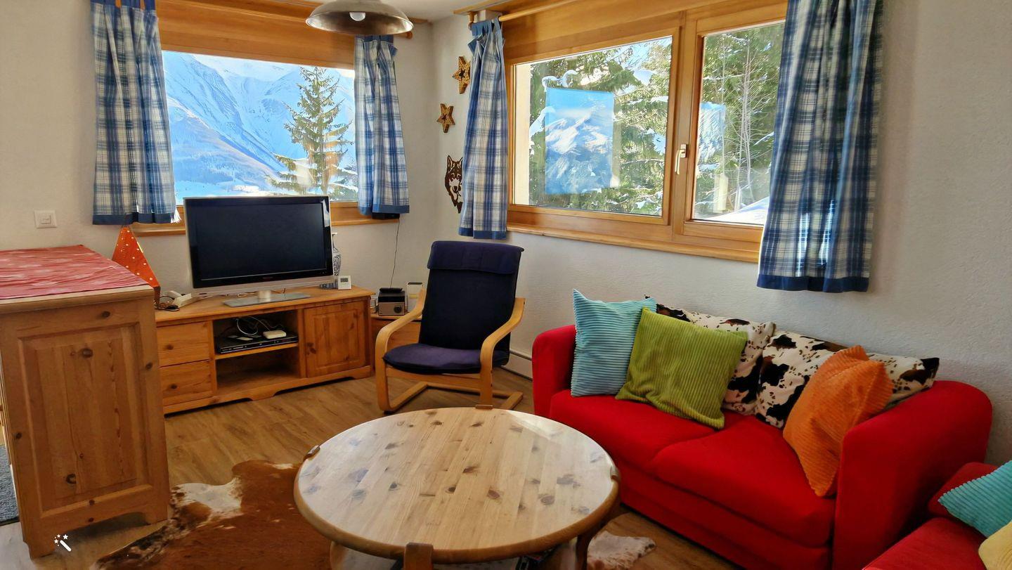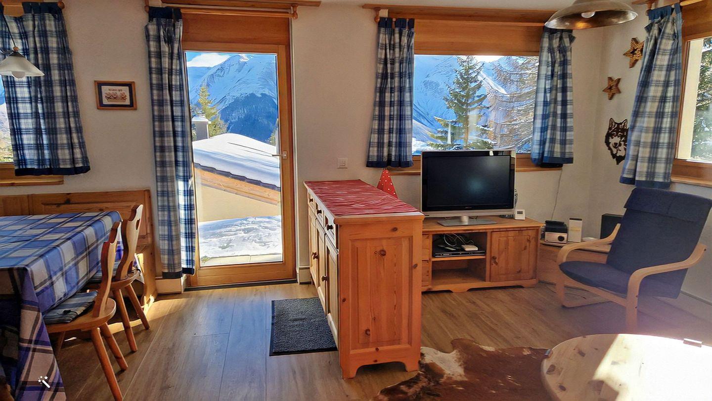 Die Wohnung umfasst zwei Schlafzimmer mit insgesamt fünf Schlafplätzen. Der Wohnbereich ist mit einer offenen Küche kombiniert und bietet ausreichend Platz für gemeinsame Stunden. Ein Badezimmer mit Dusche, Lavabo und Toilette sowie eine Garderobe gehören zur Ausstattung. Zusätzlich stehen ein Skiraum und eine Terrasse mit Gartenmöbeln zur Verfügung.
