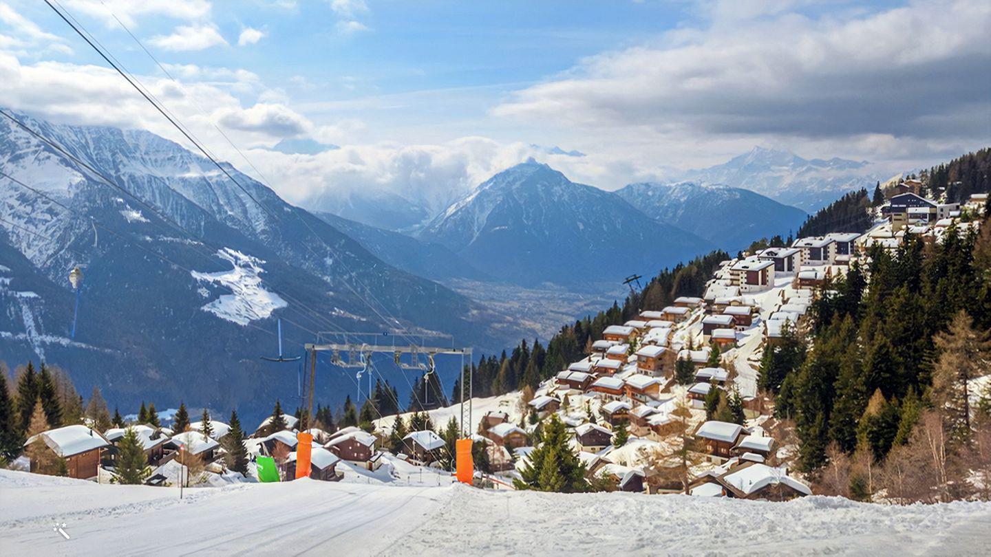 Genießen Sie auf dem Sonnenplateau die Aussicht auf die Walliser Bergwelt.