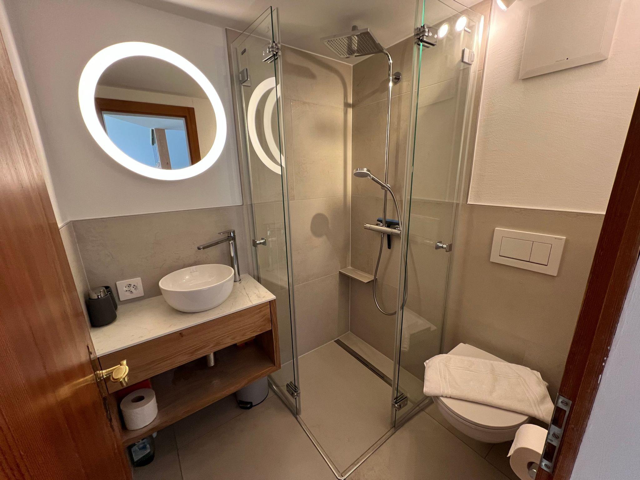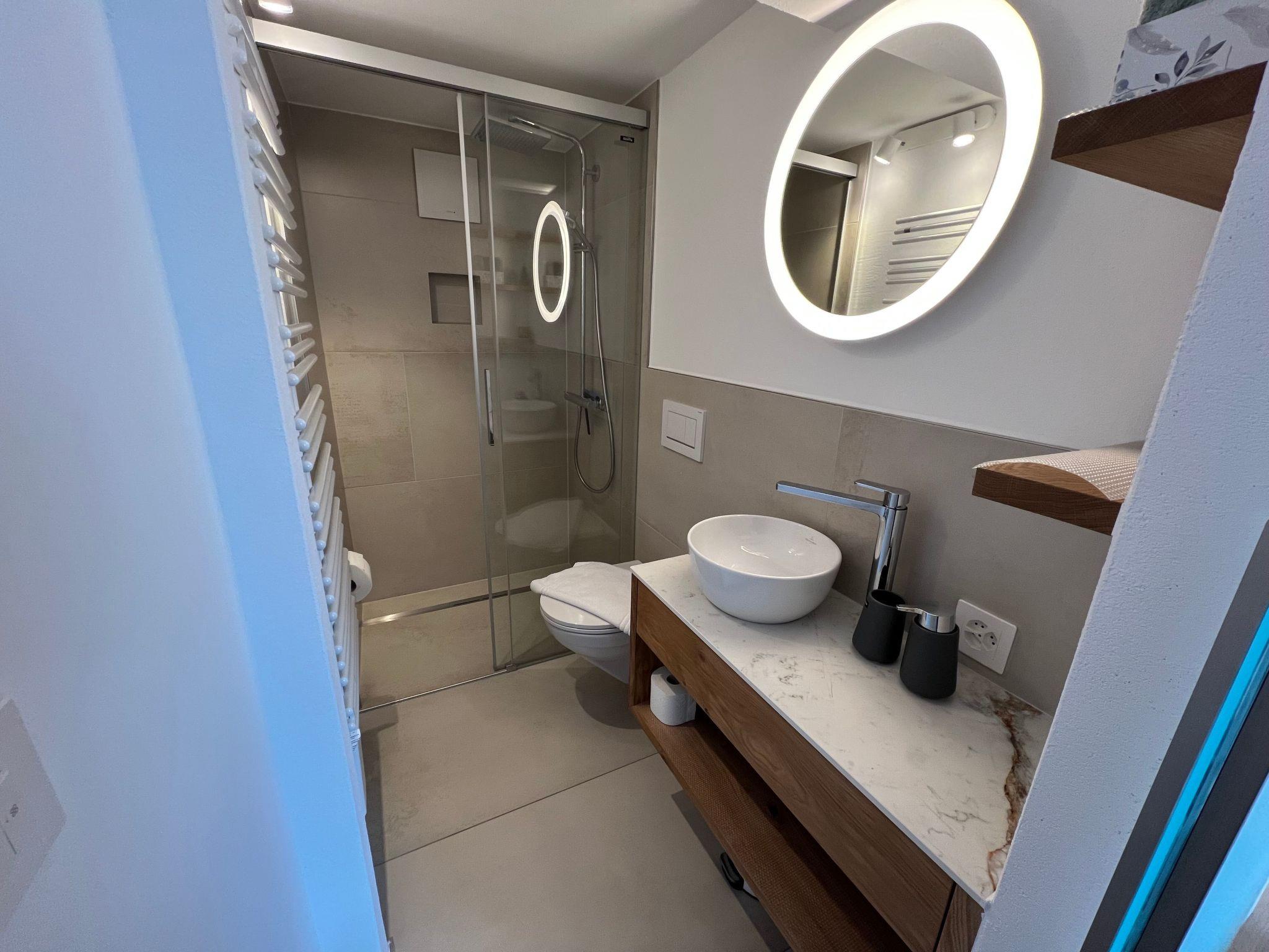 Innen bietet die Wohnung eine offene, voll ausgestattete Küche mit Backofen, Kühlschrank, Nespresso-Kaffeemaschine, Wasserkocher, Fondue- und Raclette-Set, Toaster, die für kulinarische Höhenflüge keine Wünsche offen lässt. Das gemütliche Wohnzimmer ist mit einem Sofa, einem Esstisch und TV ausgestattet, während die zwei Schlafzimmer jeweils zwei Einzelbetten beherbergen. Das Badezimmer verfügt über eine Toilette, Badewanne, Ablage für Frottéewäsche, ein Lavabo mit Spiegel und einen Haartrockner.
