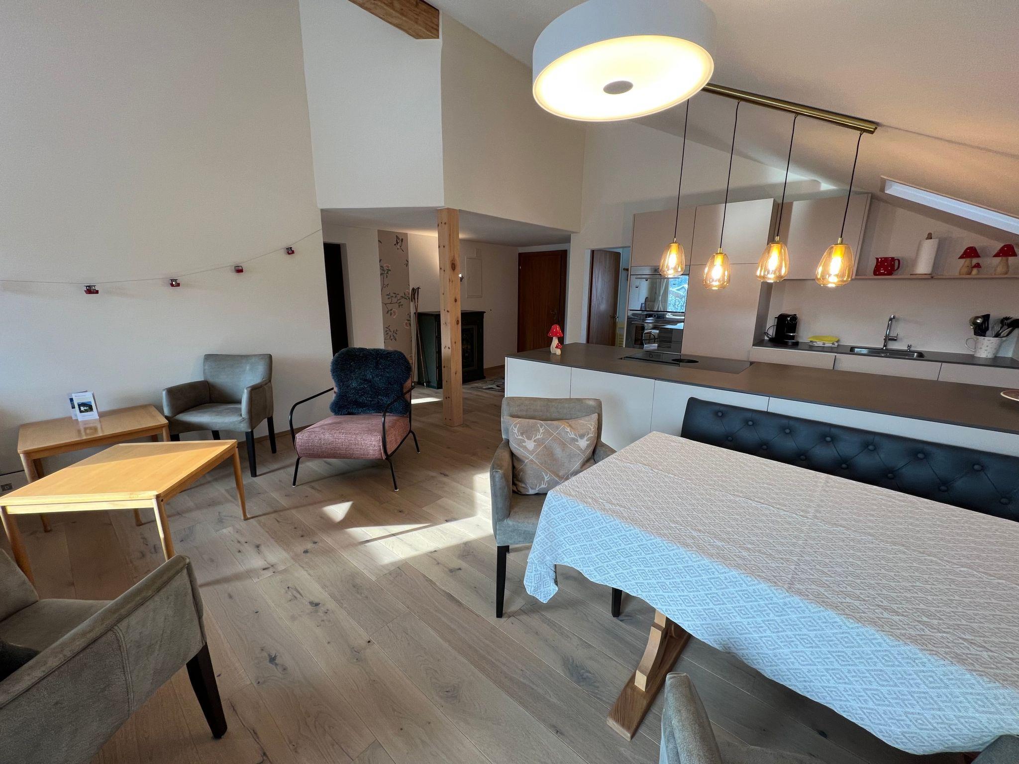 Willkommen in der Chesa Calderas, Ihrem Traumziel am Eingang des bezaubernden Bevertals. Hier, in ruhiger und sonniger Lage, wartet eine liebevoll eingerichtete Attikawohnung im Dachgeschoss auf Sie. Die Wohnung, erreicht nach einem Aufstieg bis zur vierten Etage – ein Lift ist nicht vorhanden, belohnt mit einer wunderschönen Aussicht und bietet Platz für bis zu 4 Personen.